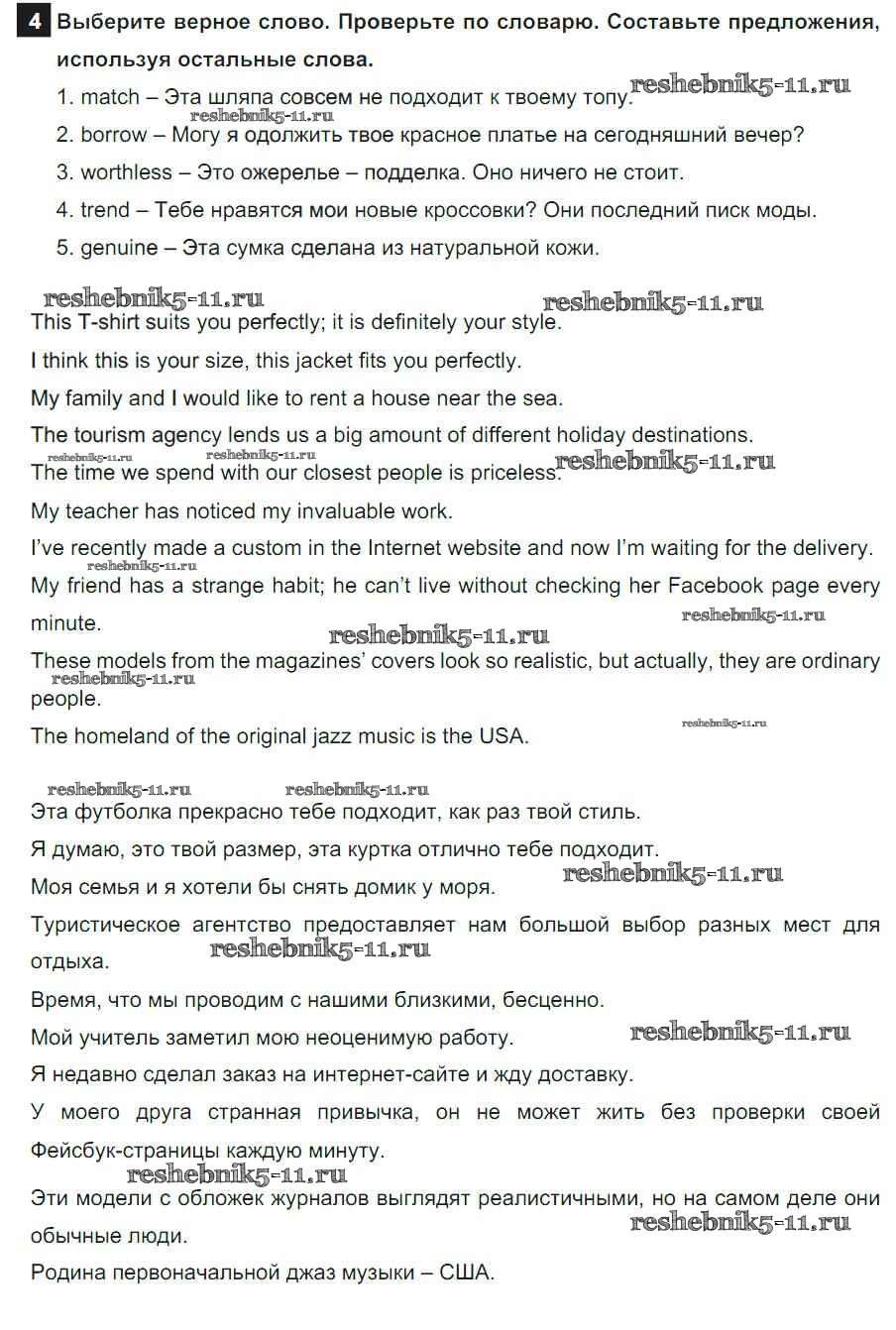 Готовая домашняя работа с ответами по Английскому языку за 8 класс Ваулина, Дули, Эванс, Подоляко Учебник Spotlight Просвещение 2015 ФГОС - Часть 4f 4