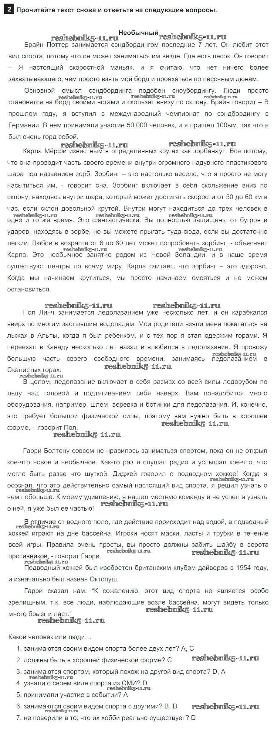Готовая домашняя работа с ответами по Английскому языку за 8 класс Ваулина, Дули, Эванс, Подоляко Учебник Spotlight Просвещение 2015 ФГОС - Часть 8a 2