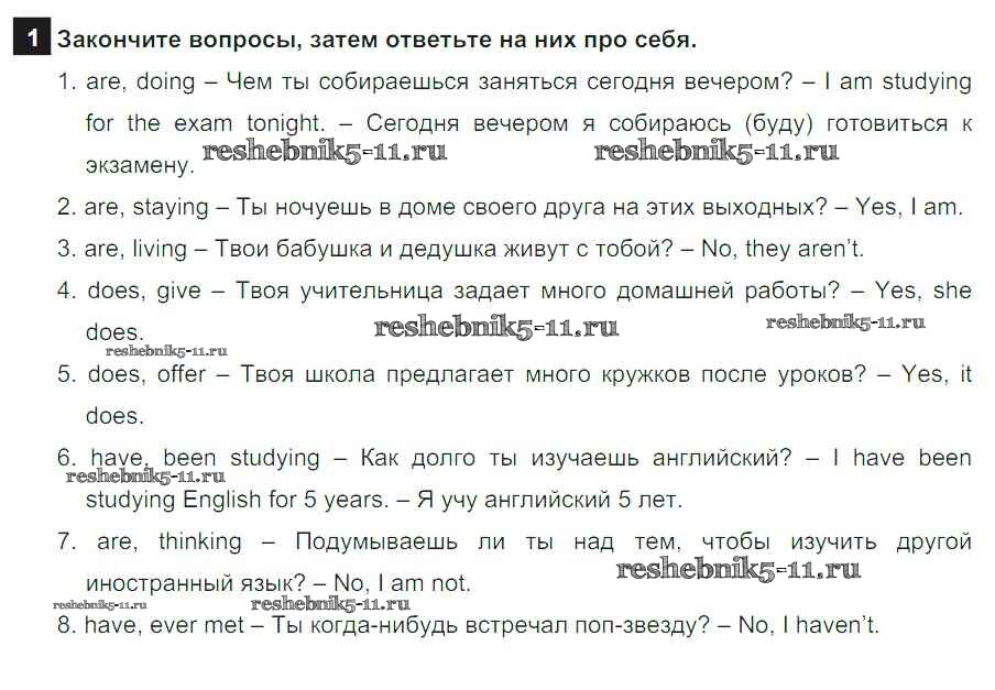 Готовая домашняя работа с ответами по Английскому языку за 8 класс Ваулина, Дули, Эванс, Подоляко Учебник Spotlight Просвещение 2015 ФГОС - Module 1 1