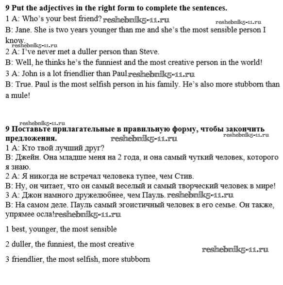 Готовая домашняя работа с ответами по Английскому языку за 8 класс Ваулина, Дули, Эванс, Подоляко Учебник Spotlight Просвещение 2015 ФГОС - Module 1 9