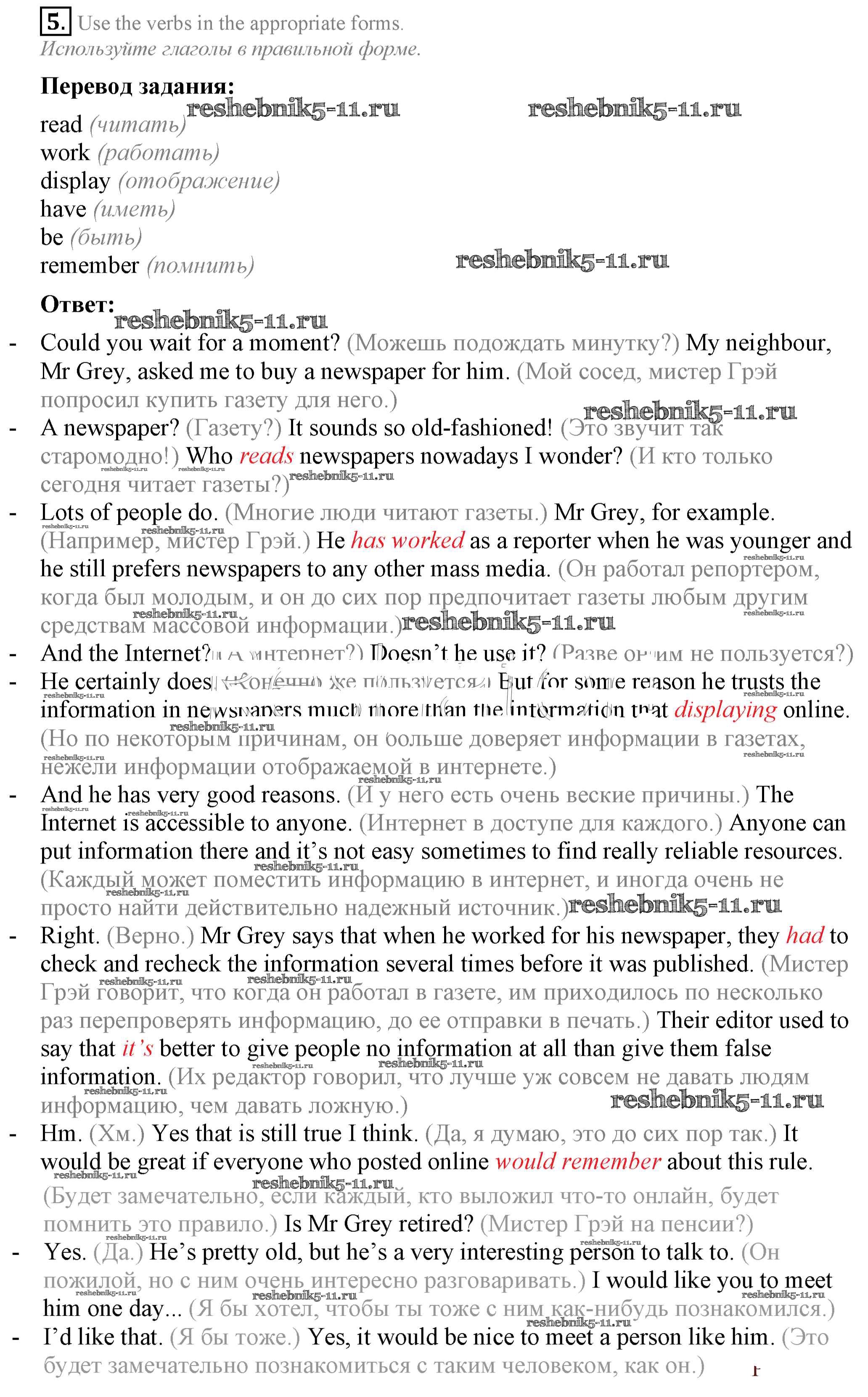 Готовая домашняя работа с ответами по Английскому языку за 8 класс Биболетова, Бабушис, Кларк Рабочая тетрадь Enjoy English Титул 2015 ФГОС - Test yourself 5