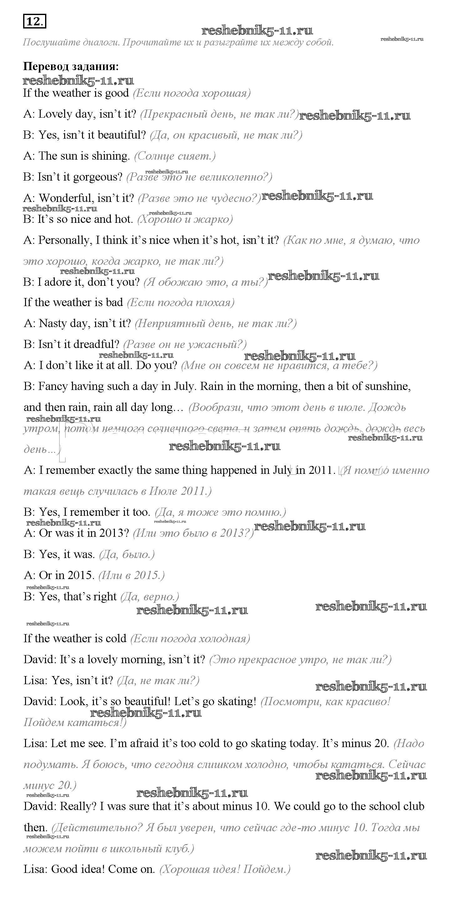 Готовая домашняя работа с ответами по Английскому языку за 8 класс Биболетова, Трубанева Учебник Enjoy English Титул 2015 ФГОС - Section 1. After rain comes fine weather 12
