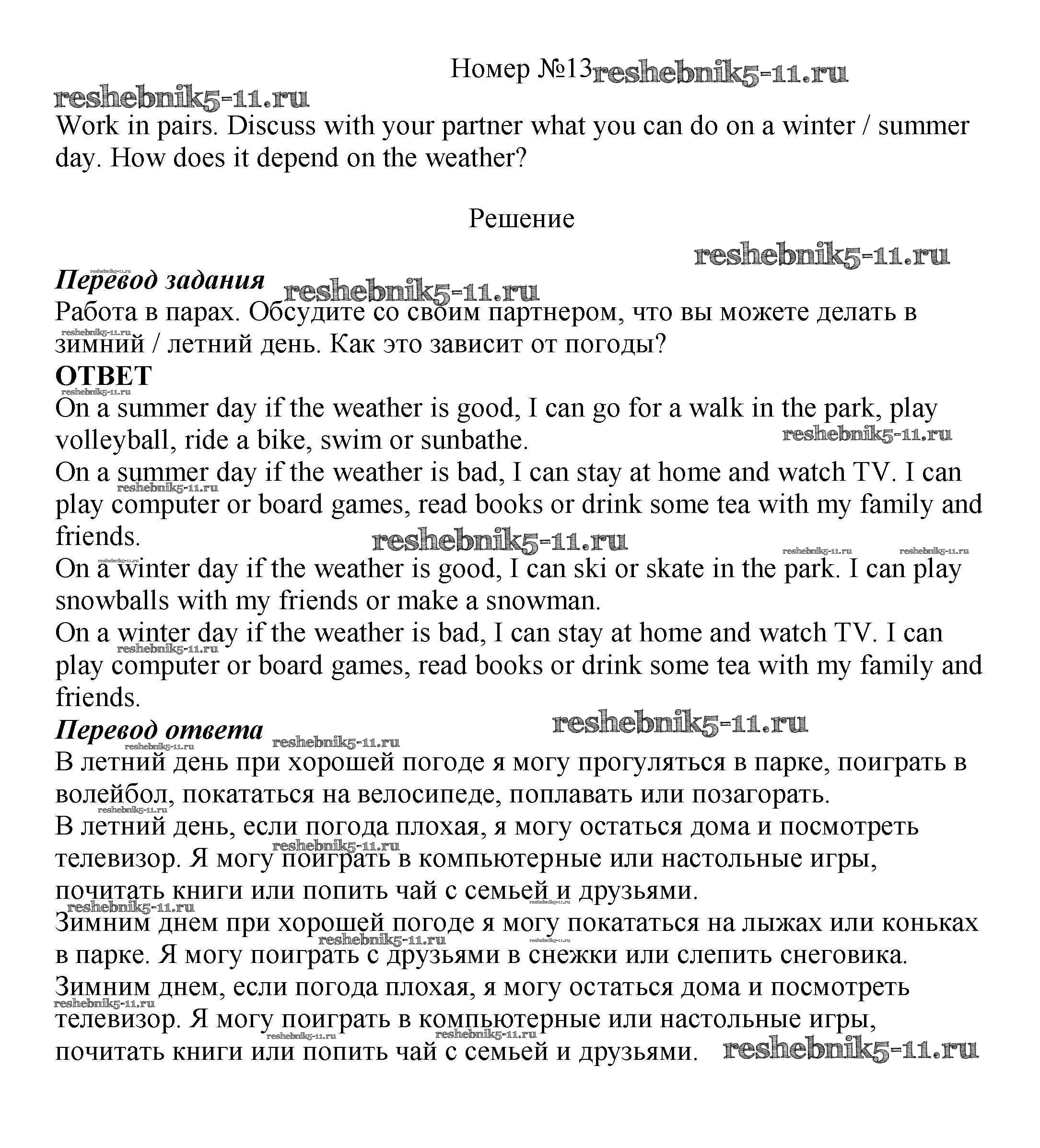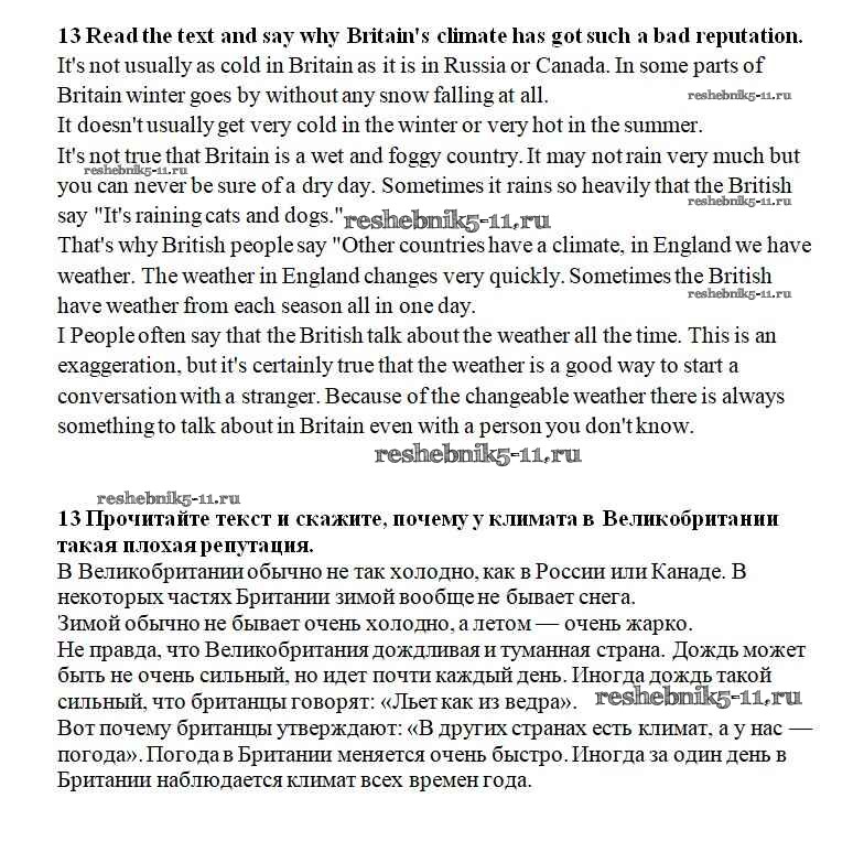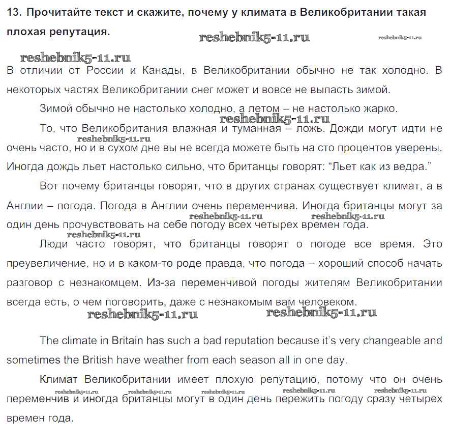 Готовая домашняя работа с ответами по Английскому языку за 8 класс Биболетова, Трубанева Учебник Enjoy English Титул 2015 ФГОС - Section 1. After rain comes fine weather 13