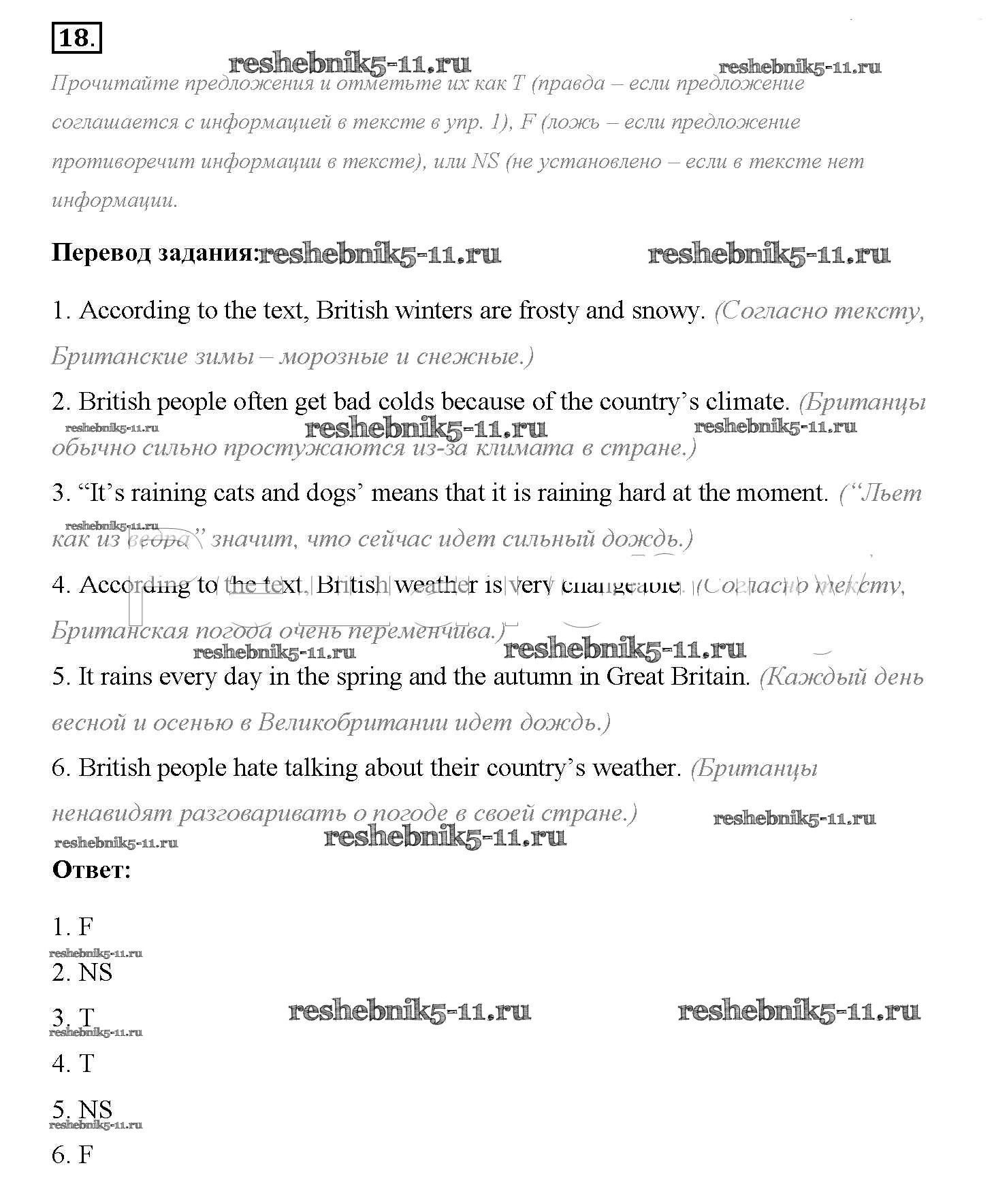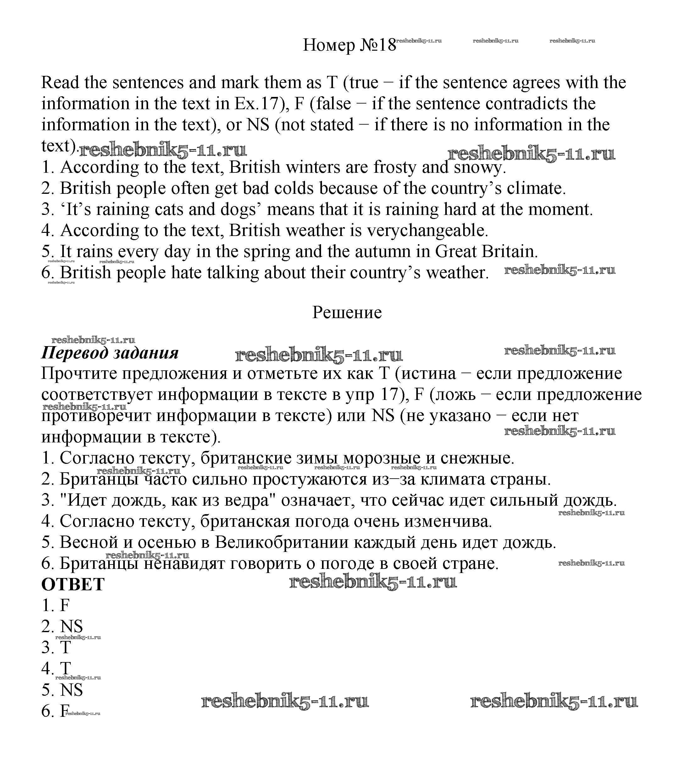 Готовая домашняя работа с ответами по Английскому языку за 8 класс Биболетова, Трубанева Учебник Enjoy English Титул 2015 ФГОС - Section 1. After rain comes fine weather 18