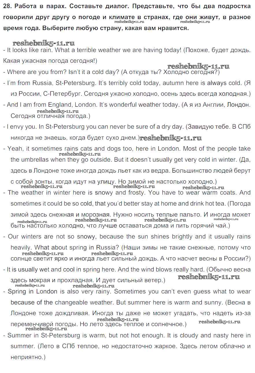 Готовая домашняя работа с ответами по Английскому языку за 8 класс Биболетова, Трубанева Учебник Enjoy English Титул 2015 ФГОС - Section 1. After rain comes fine weather 28
