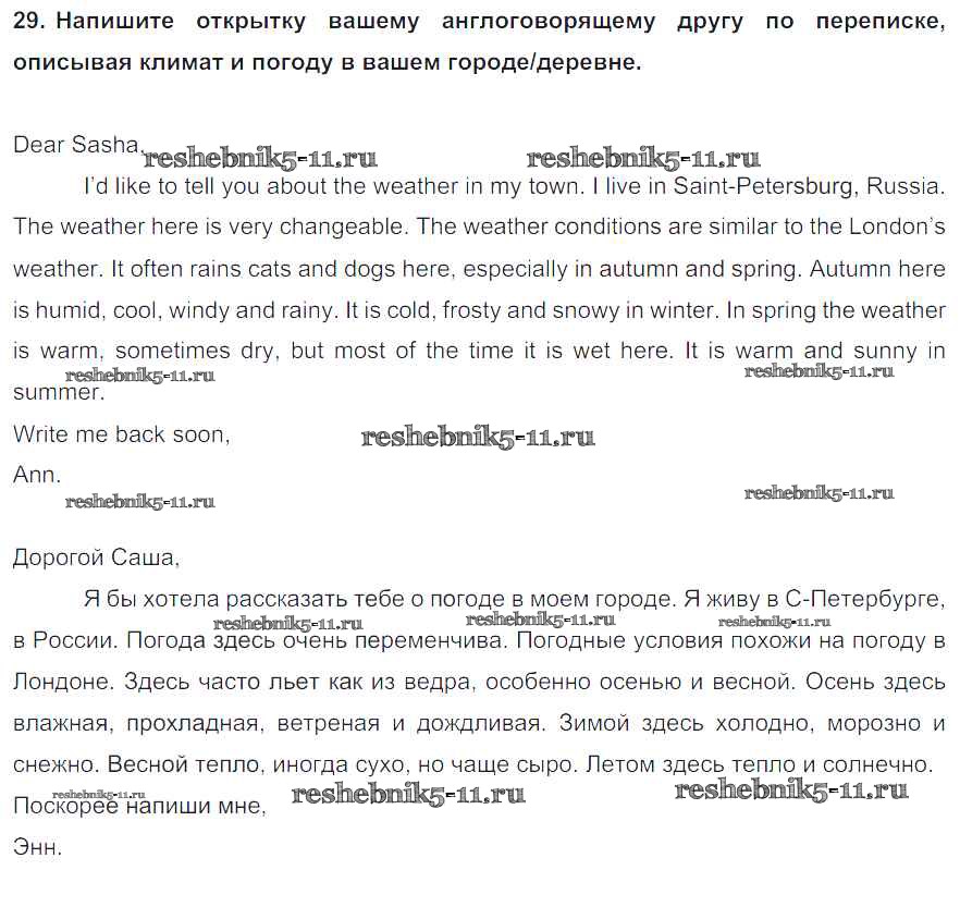 Готовая домашняя работа с ответами по Английскому языку за 8 класс Биболетова, Трубанева Учебник Enjoy English Титул 2015 ФГОС - Section 1. After rain comes fine weather 29