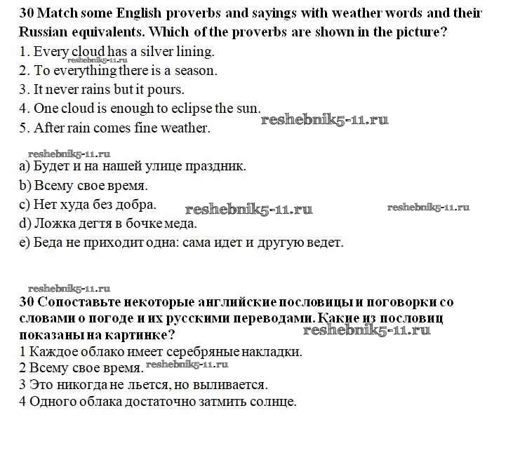 Готовая домашняя работа с ответами по Английскому языку за 8 класс Биболетова, Трубанева Учебник Enjoy English Титул 2015 ФГОС - Section 1. After rain comes fine weather 30