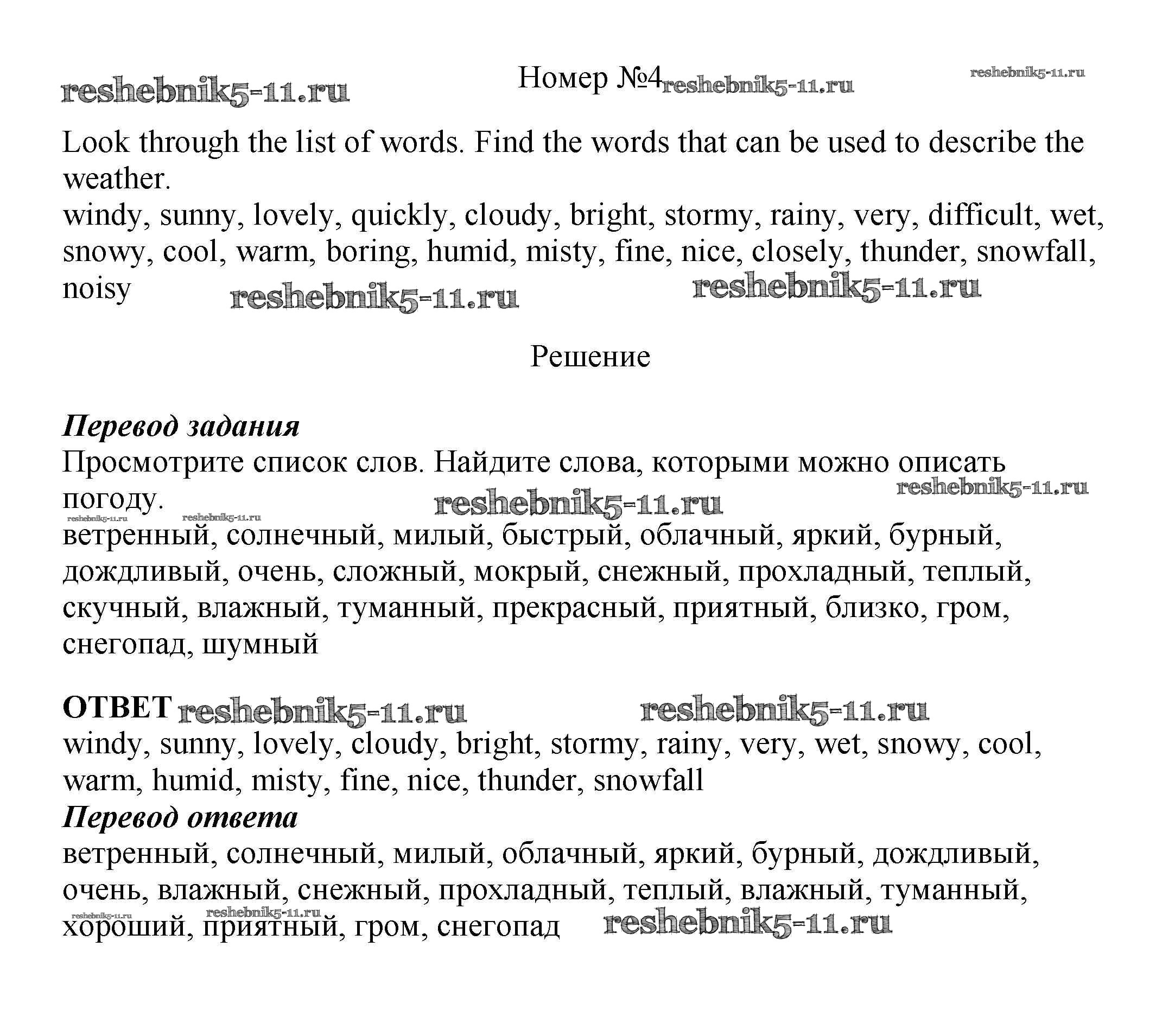 Готовая домашняя работа с ответами по Английскому языку за 8 класс Биболетова, Трубанева Учебник Enjoy English Титул 2015 ФГОС - Section 1. After rain comes fine weather 4