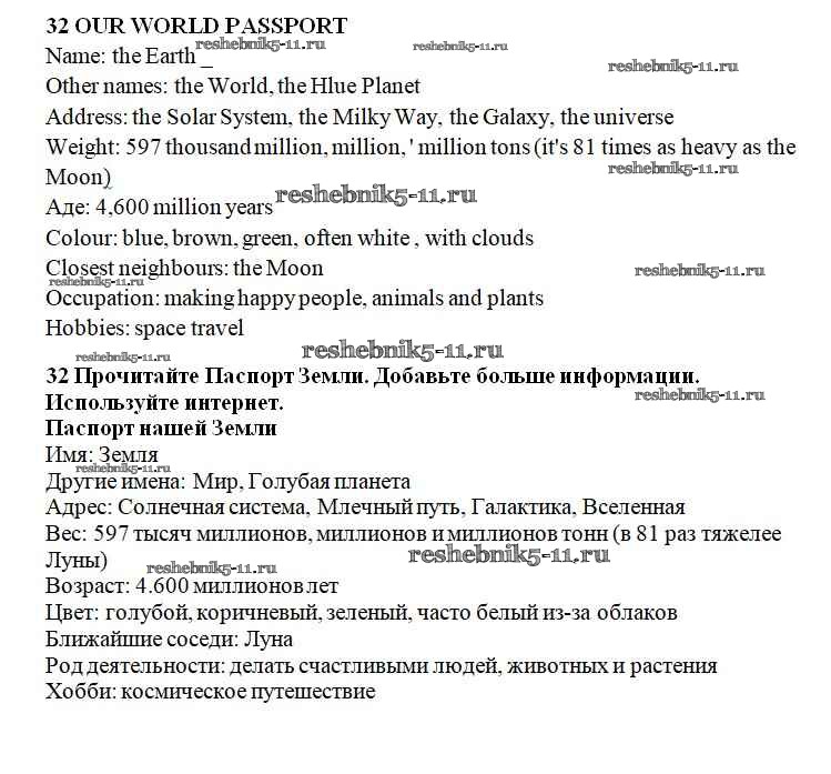 Готовая домашняя работа с ответами по Английскому языку за 8 класс Биболетова, Трубанева Учебник Enjoy English Титул 2015 ФГОС - Section 2. We're part of the universe 32