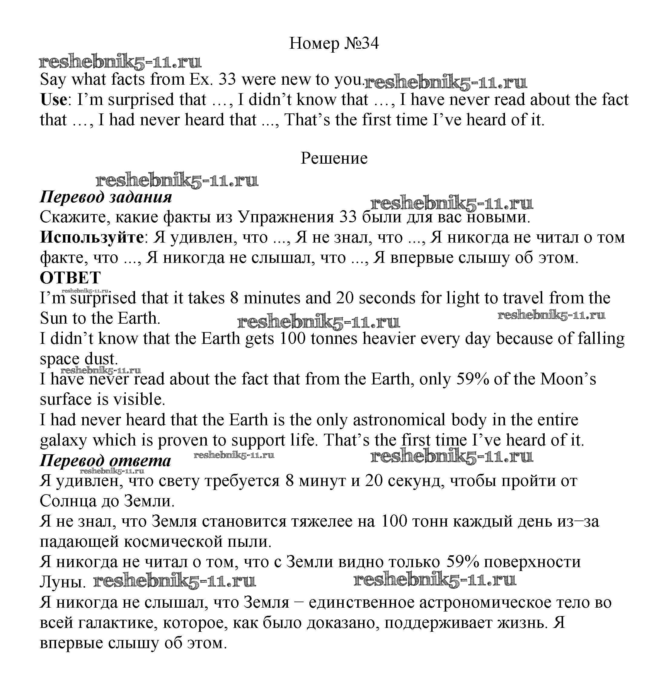 Готовая домашняя работа с ответами по Английскому языку за 8 класс Биболетова, Трубанева Учебник Enjoy English Титул 2015 ФГОС - Section 2. We're part of the universe 34