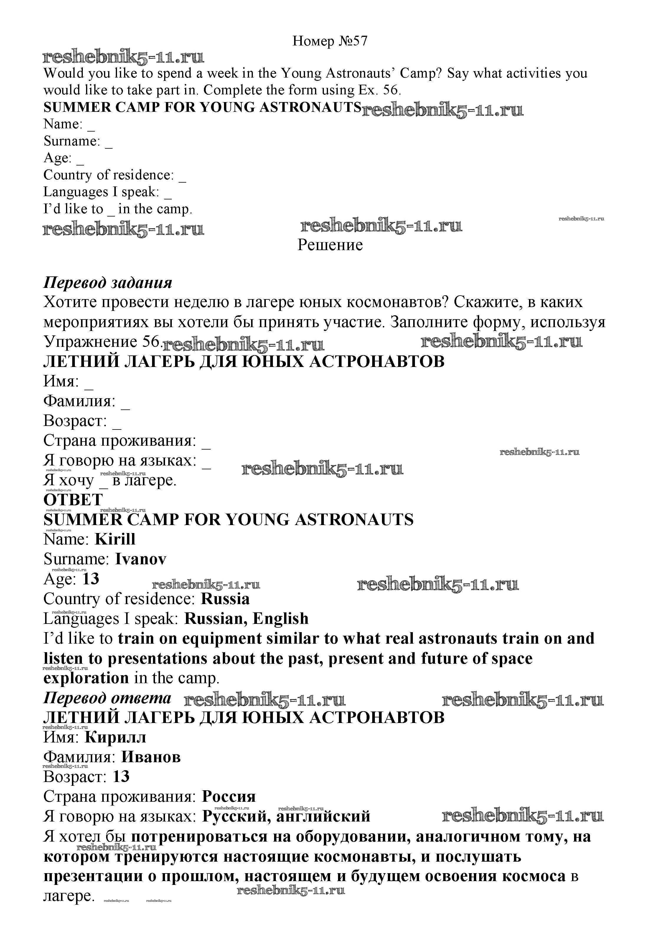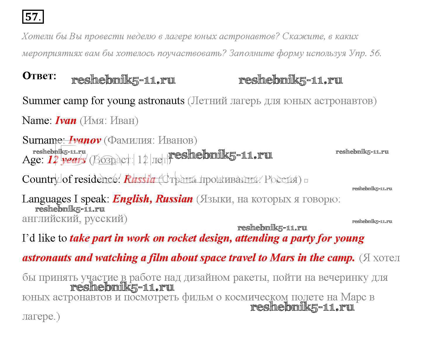 Готовая домашняя работа с ответами по Английскому языку за 8 класс Биболетова, Трубанева Учебник Enjoy English Титул 2015 ФГОС - Section 3. Who is there? 57