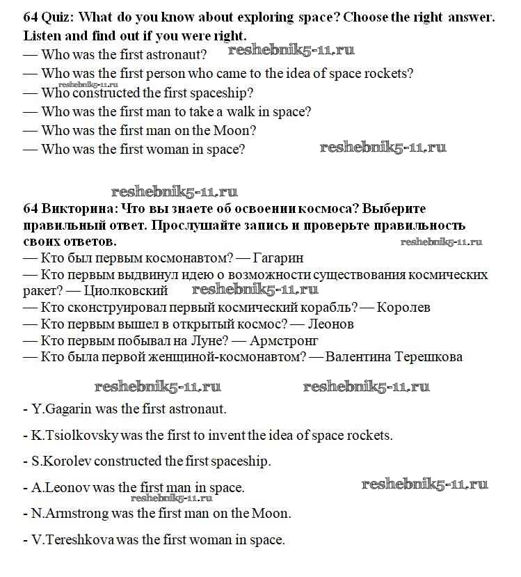 Готовая домашняя работа с ответами по Английскому языку за 8 класс Биболетова, Трубанева Учебник Enjoy English Титул 2015 ФГОС - Section 4. Exploring space 64
