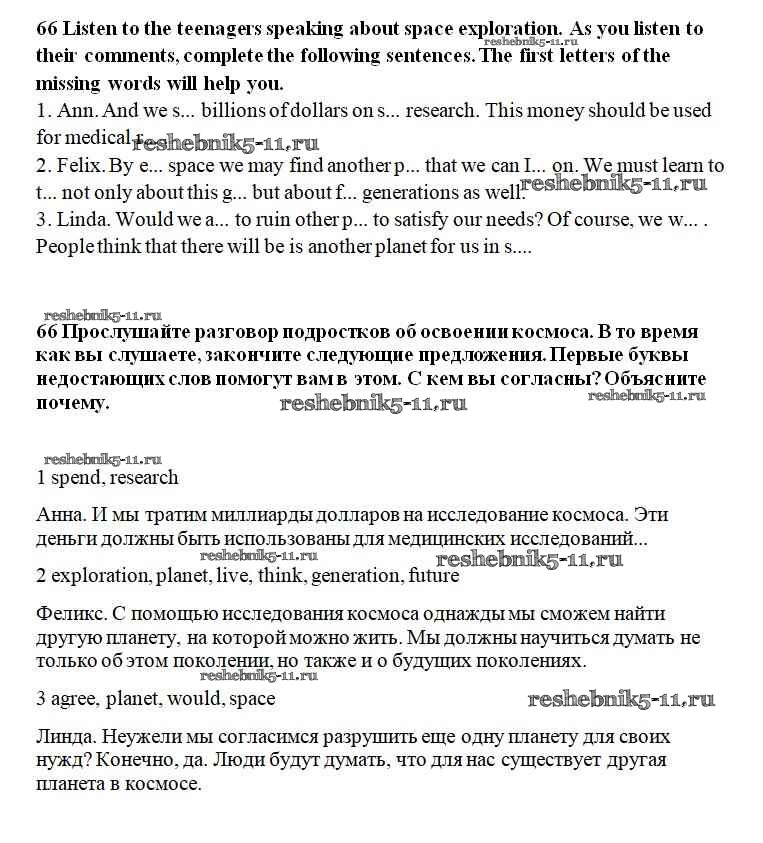 Готовая домашняя работа с ответами по Английскому языку за 8 класс Биболетова, Трубанева Учебник Enjoy English Титул 2015 ФГОС - Section 4. Exploring space 66