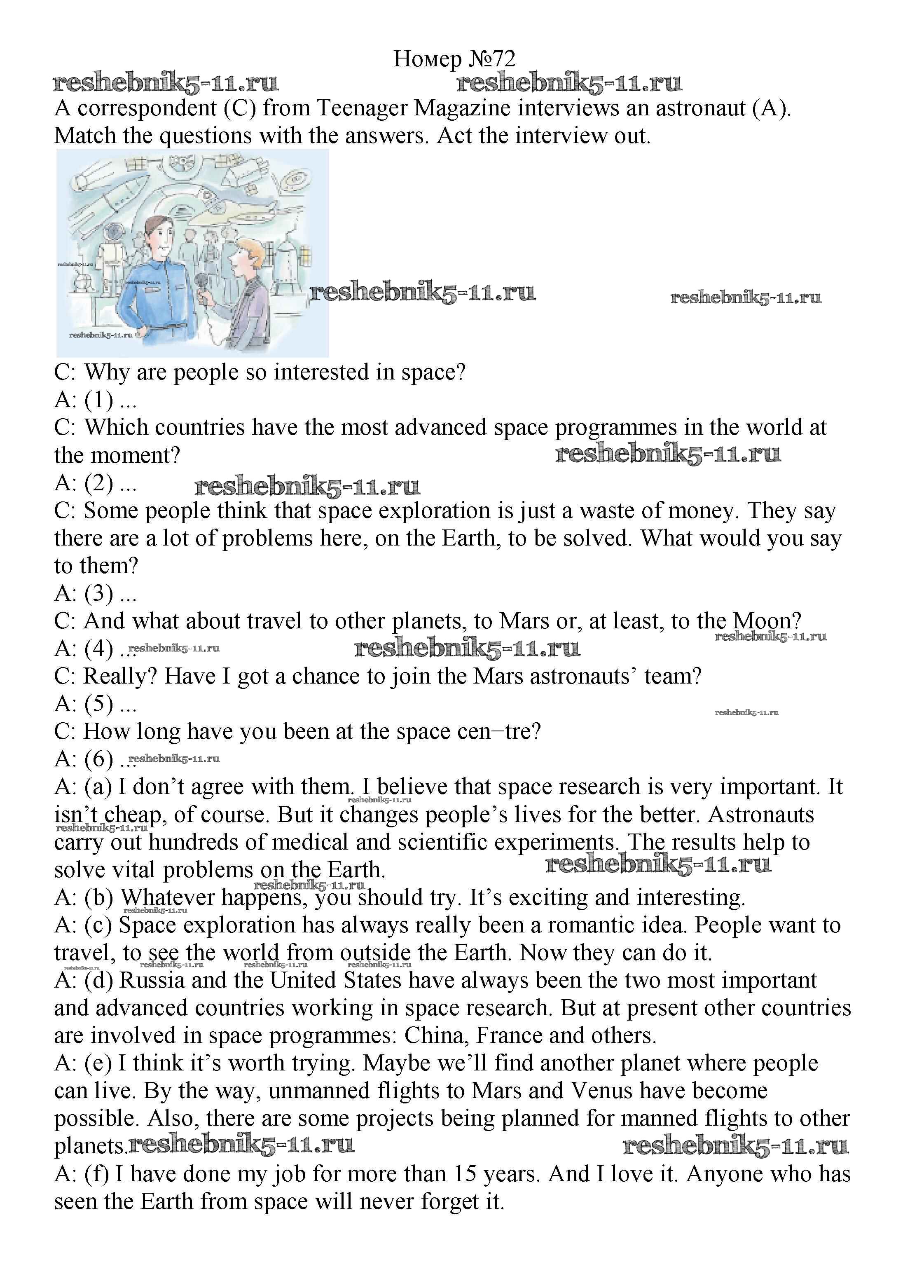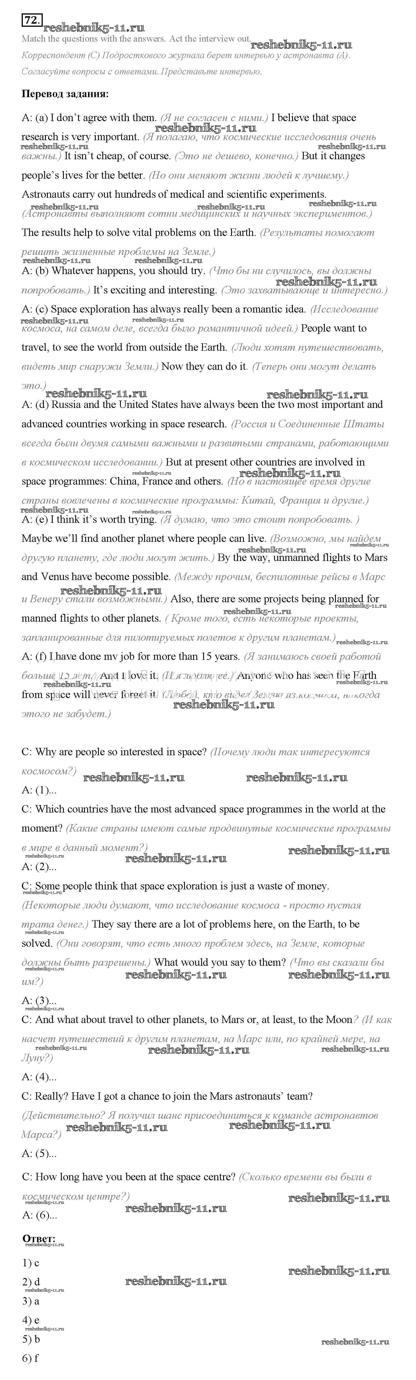 Готовая домашняя работа с ответами по Английскому языку за 8 класс Биболетова, Трубанева Учебник Enjoy English Титул 2015 ФГОС - Section 4. Exploring space 72