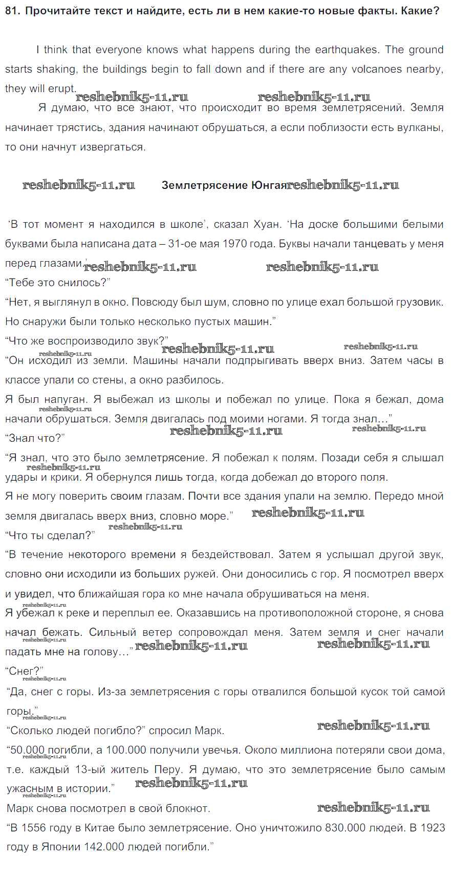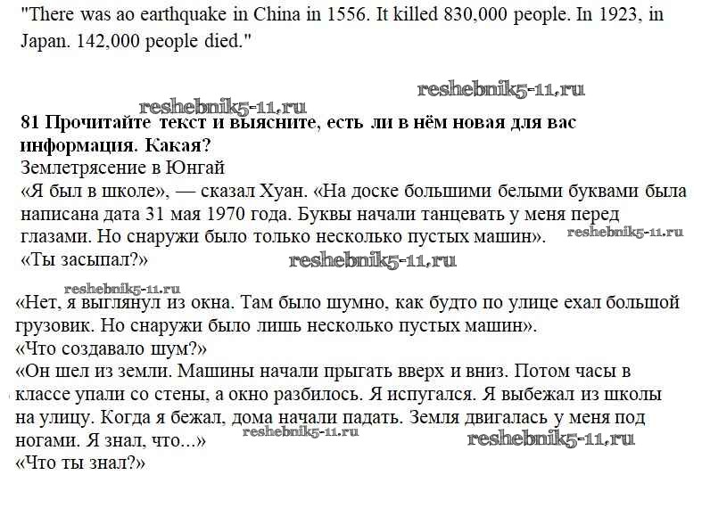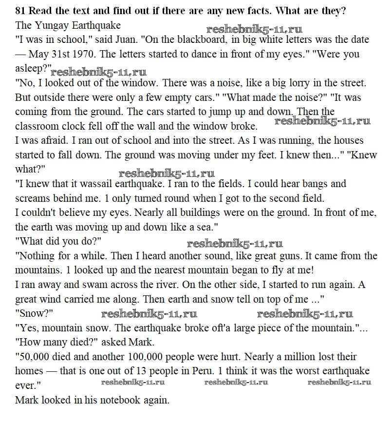 Готовая домашняя работа с ответами по Английскому языку за 8 класс Биболетова, Трубанева Учебник Enjoy English Титул 2015 ФГОС - Section 5. Is the Earth a dangerous place? 81