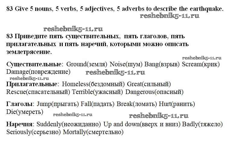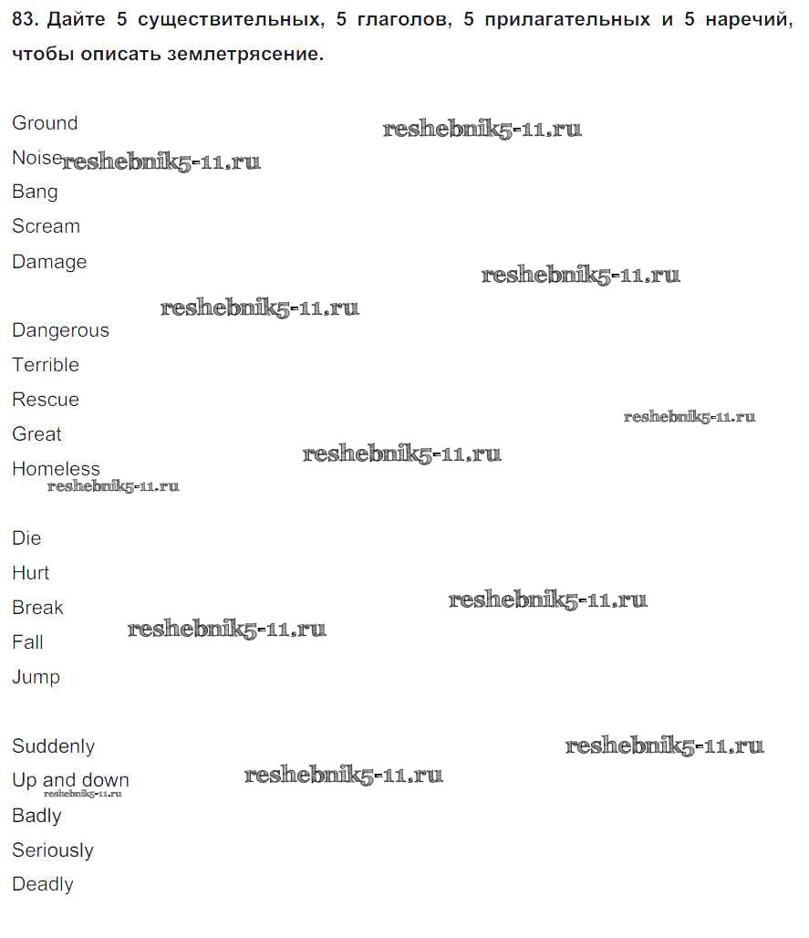 Готовая домашняя работа с ответами по Английскому языку за 8 класс Биболетова, Трубанева Учебник Enjoy English Титул 2015 ФГОС - Section 5. Is the Earth a dangerous place? 83