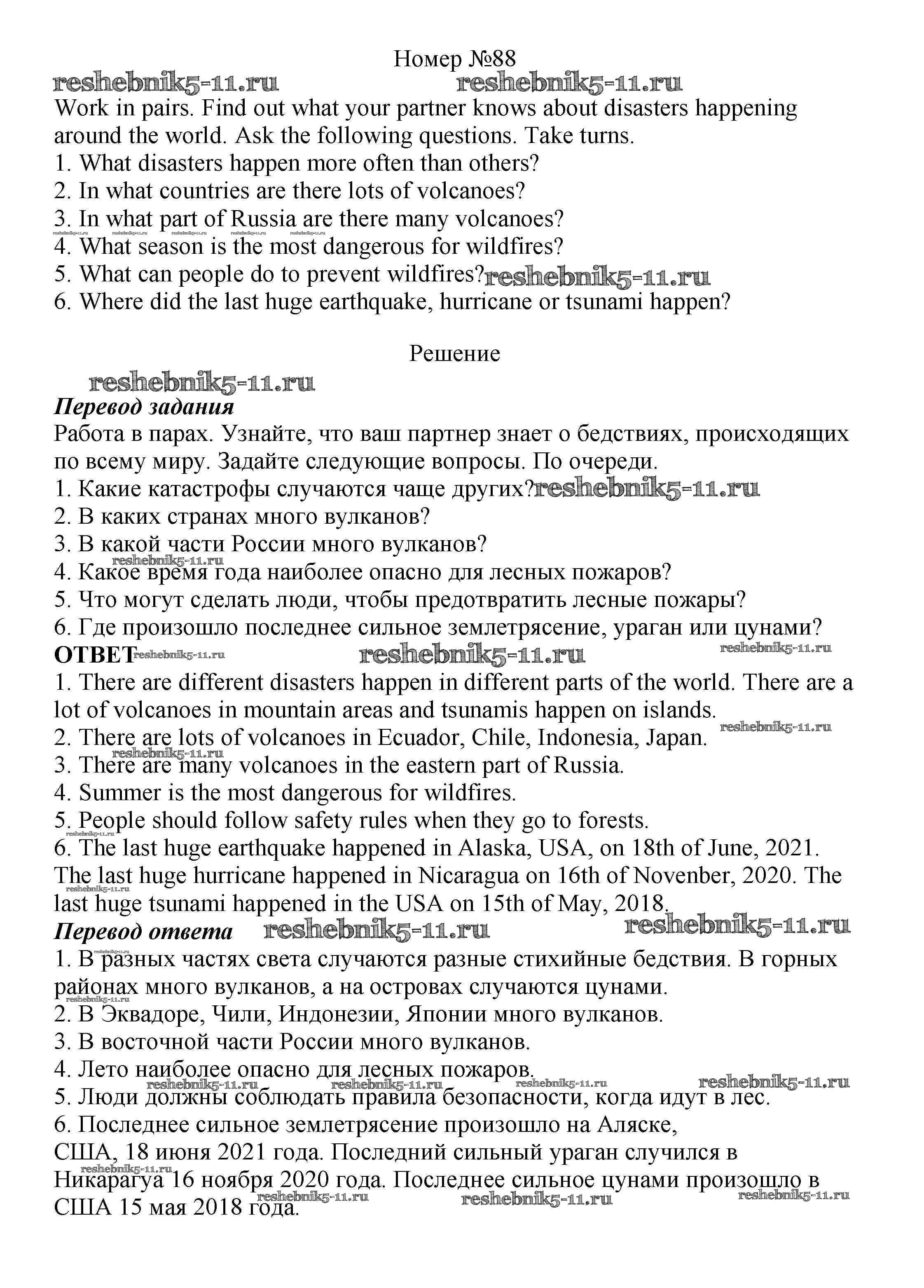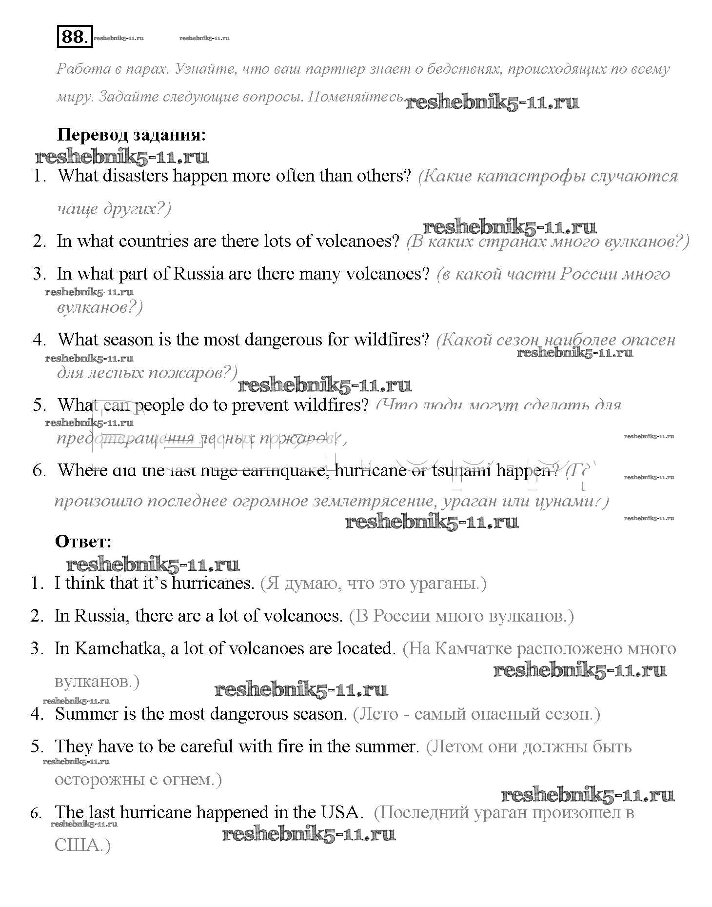 Готовая домашняя работа с ответами по Английскому языку за 8 класс Биболетова, Трубанева Учебник Enjoy English Титул 2015 ФГОС - Section 5. Is the Earth a dangerous place? 88