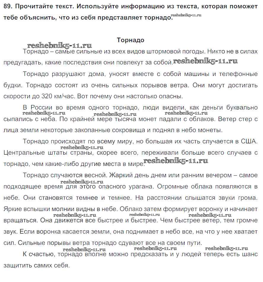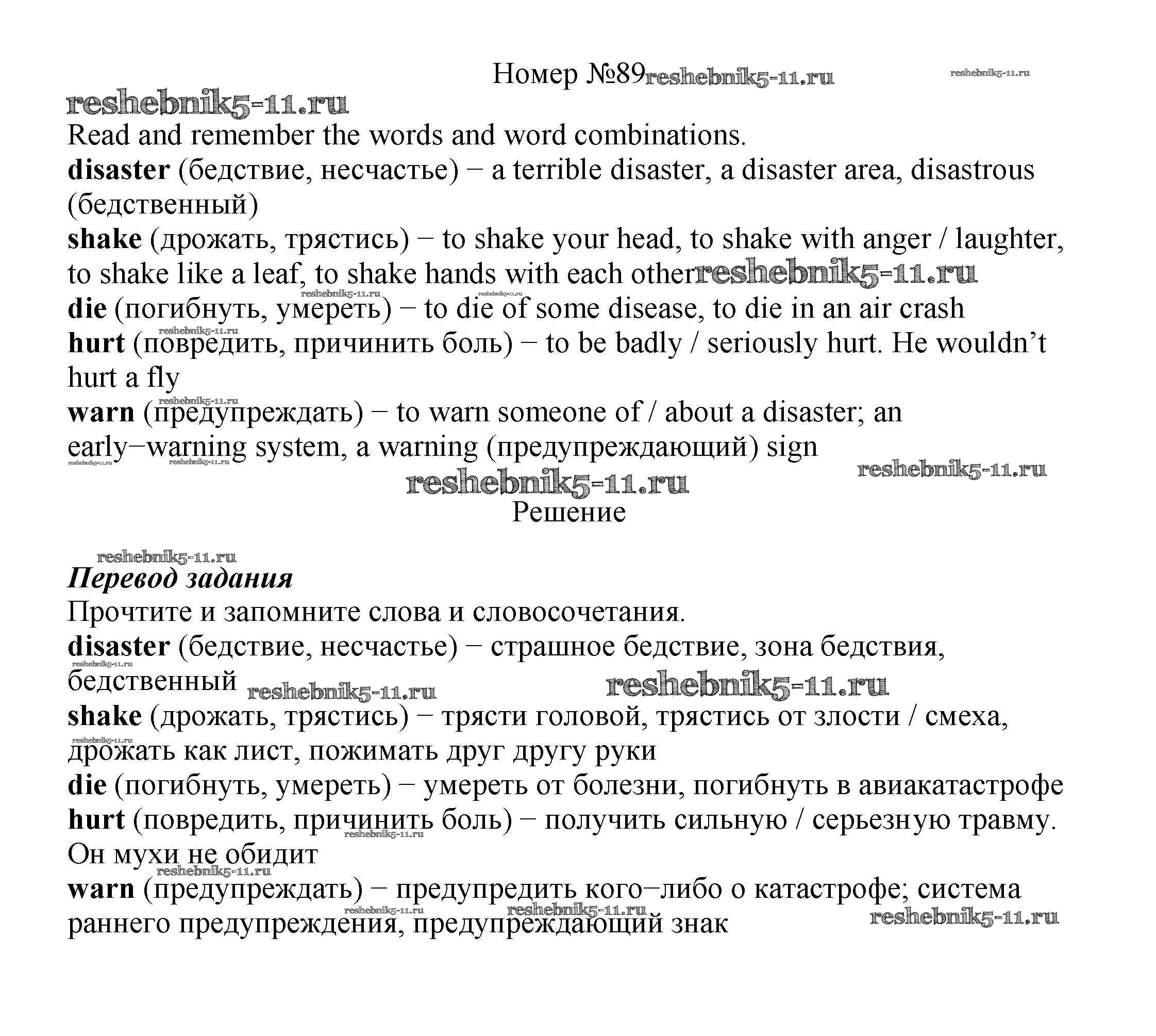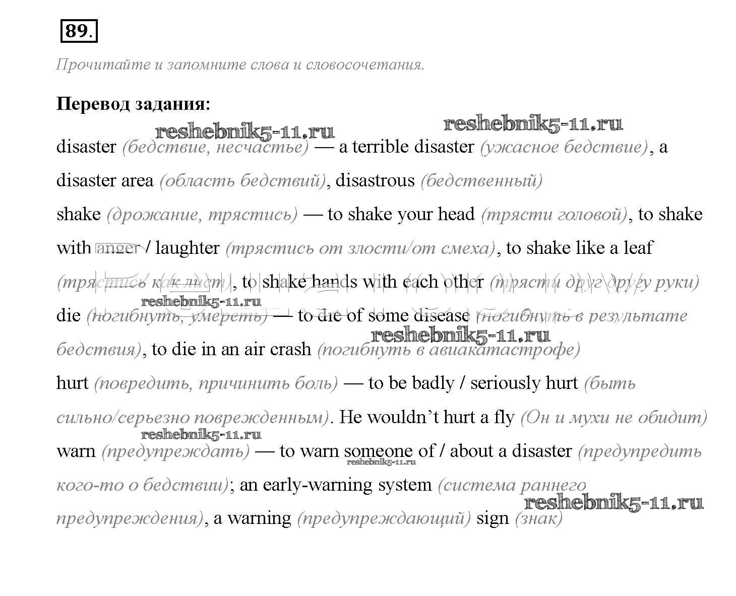 Готовая домашняя работа с ответами по Английскому языку за 8 класс Биболетова, Трубанева Учебник Enjoy English Титул 2015 ФГОС - Section 5. Is the Earth a dangerous place? 89