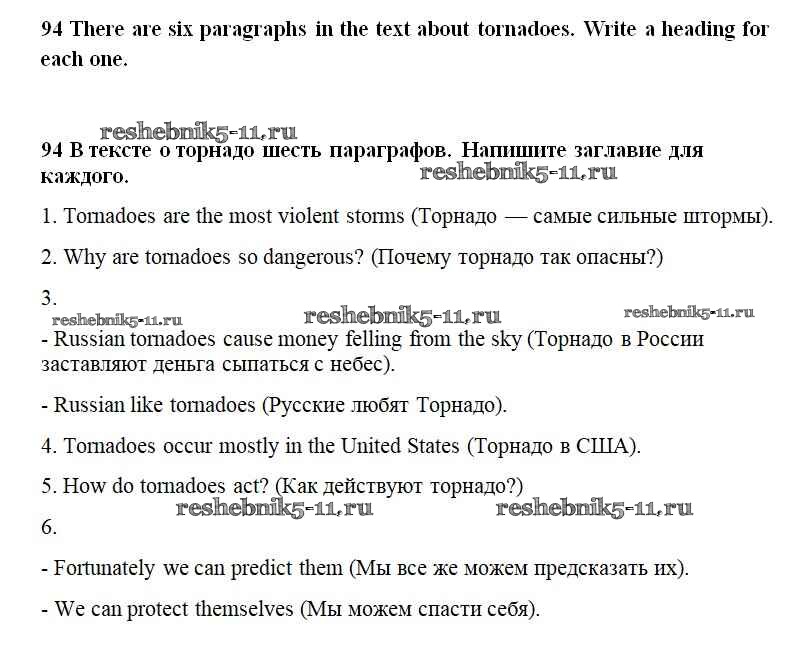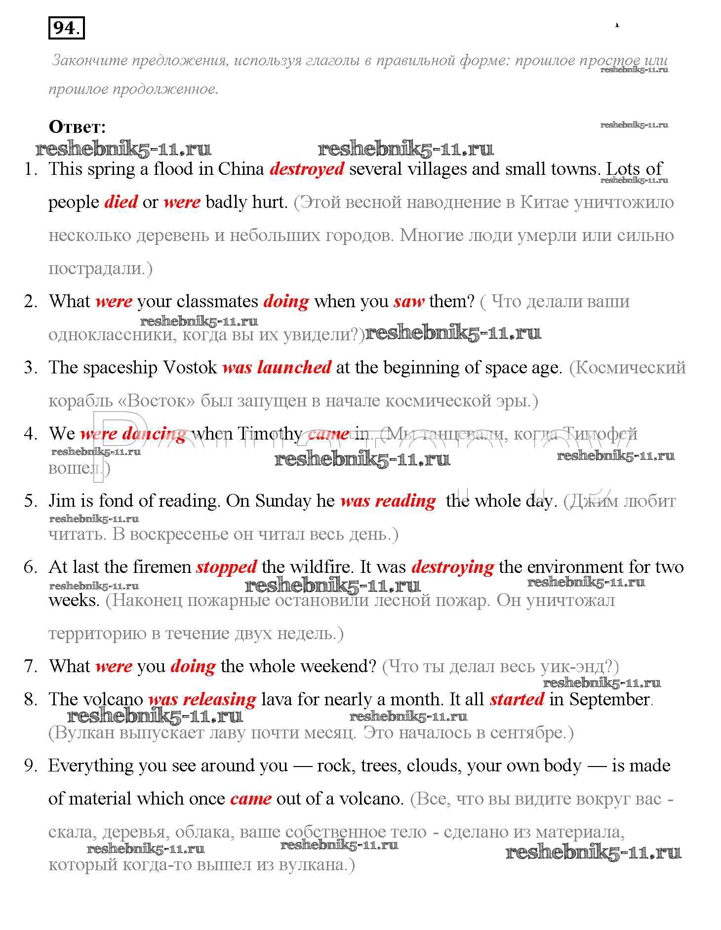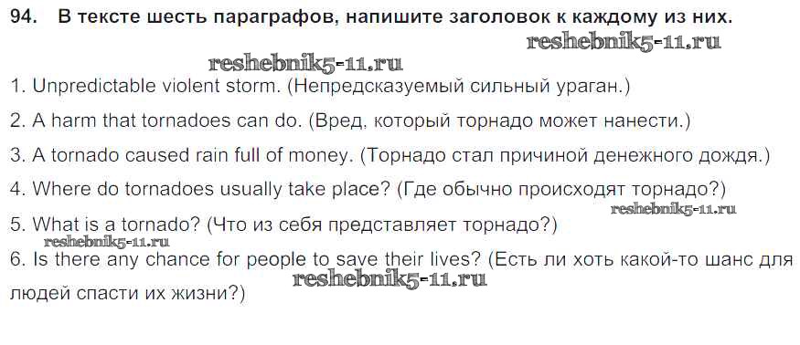 Готовая домашняя работа с ответами по Английскому языку за 8 класс Биболетова, Трубанева Учебник Enjoy English Титул 2015 ФГОС - Section 5. Is the Earth a dangerous place? 94