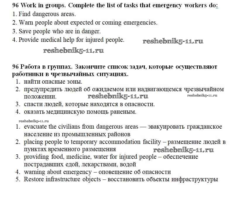 Готовая домашняя работа с ответами по Английскому языку за 8 класс Биболетова, Трубанева Учебник Enjoy English Титул 2015 ФГОС - Section 5. Is the Earth a dangerous place? 96