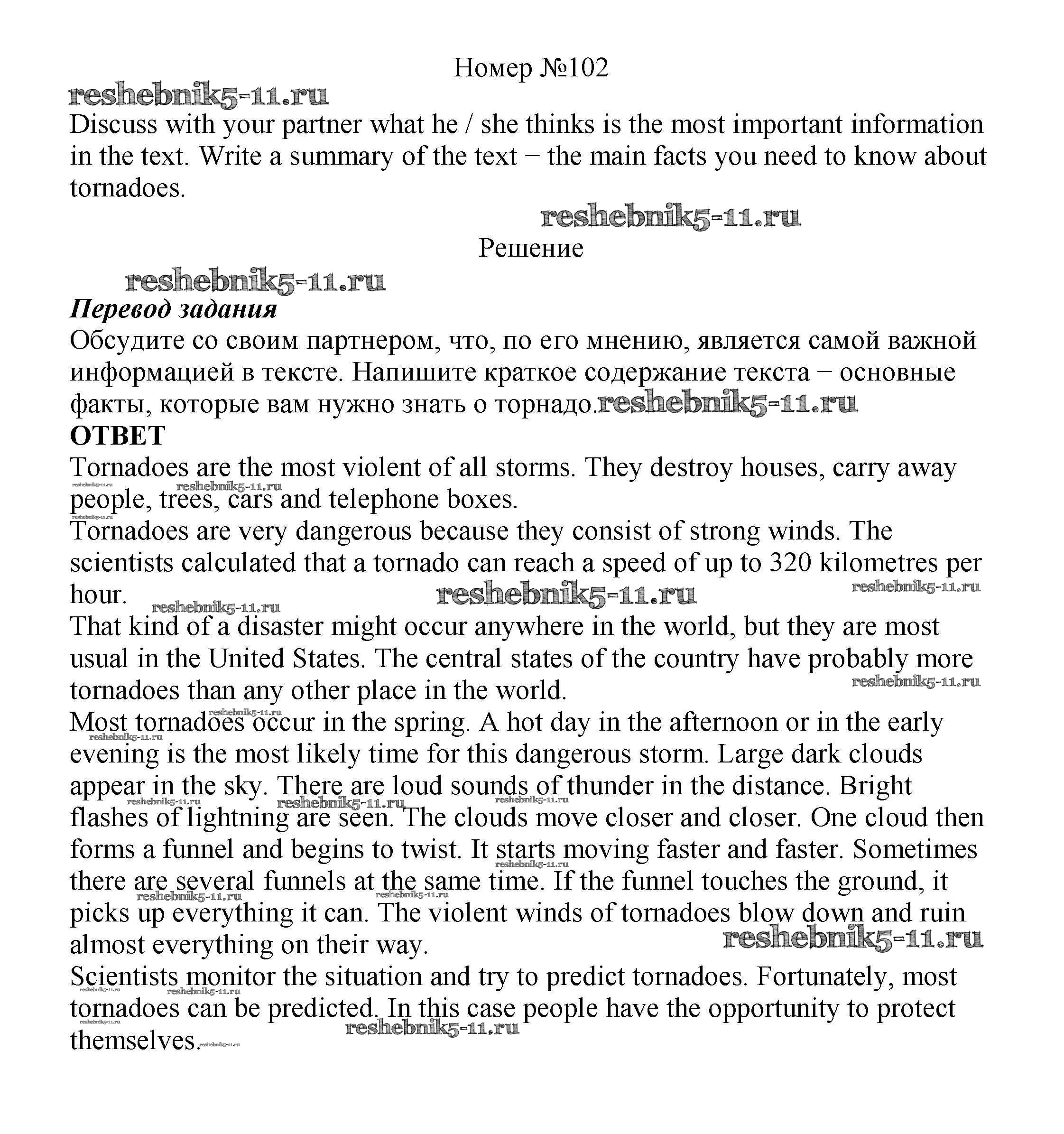 Готовая домашняя работа с ответами по Английскому языку за 8 класс Биболетова, Трубанева Учебник Enjoy English Титул 2015 ФГОС - Section 6. Surviving with optimism 102