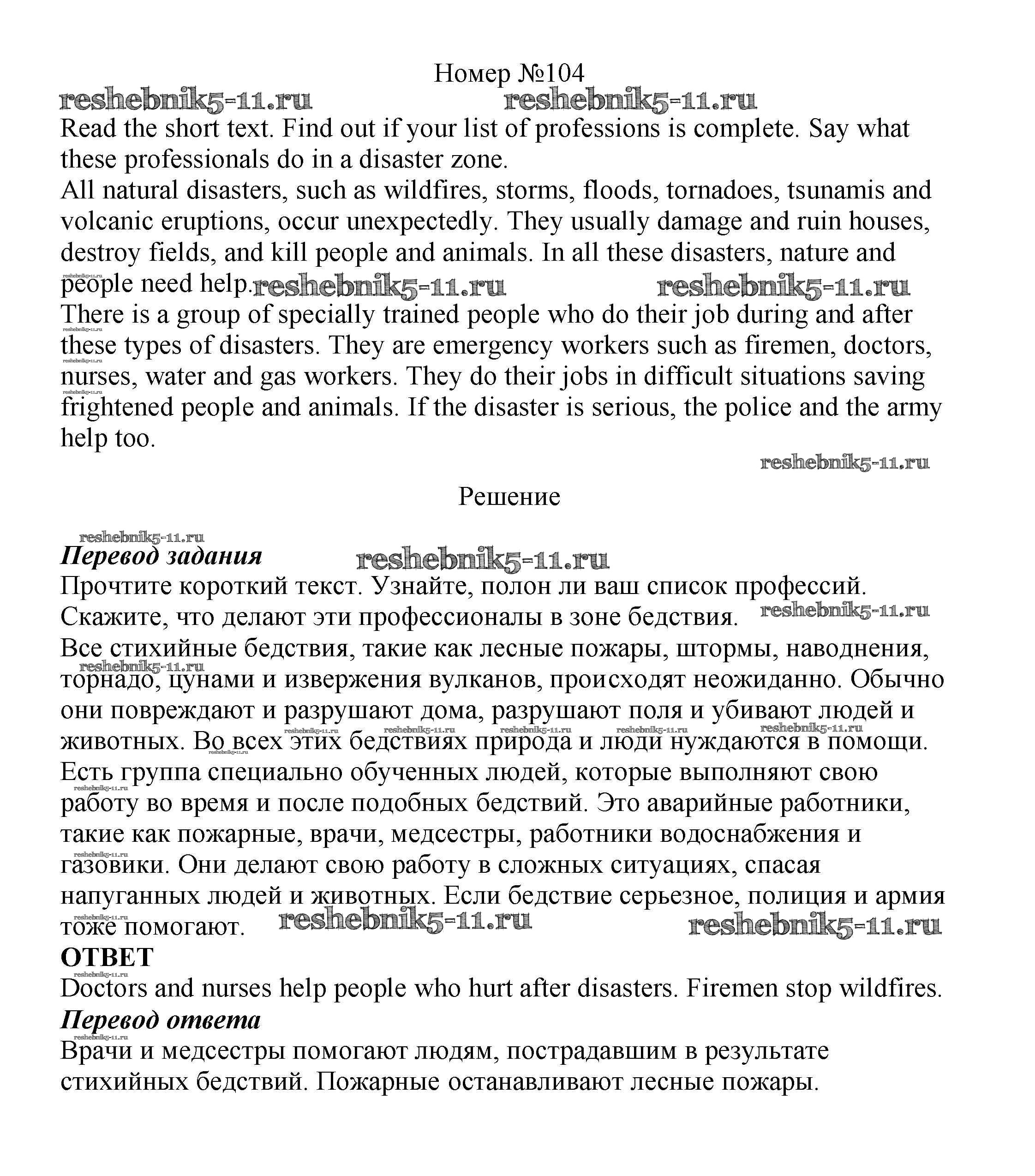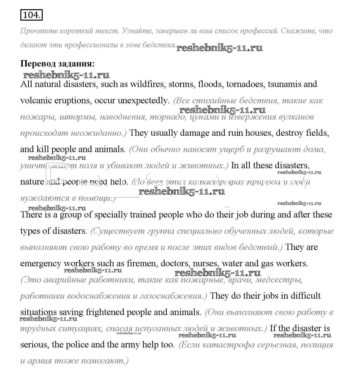 Готовая домашняя работа с ответами по Английскому языку за 8 класс Биболетова, Трубанева Учебник Enjoy English Титул 2015 ФГОС - Section 6. Surviving with optimism 104
