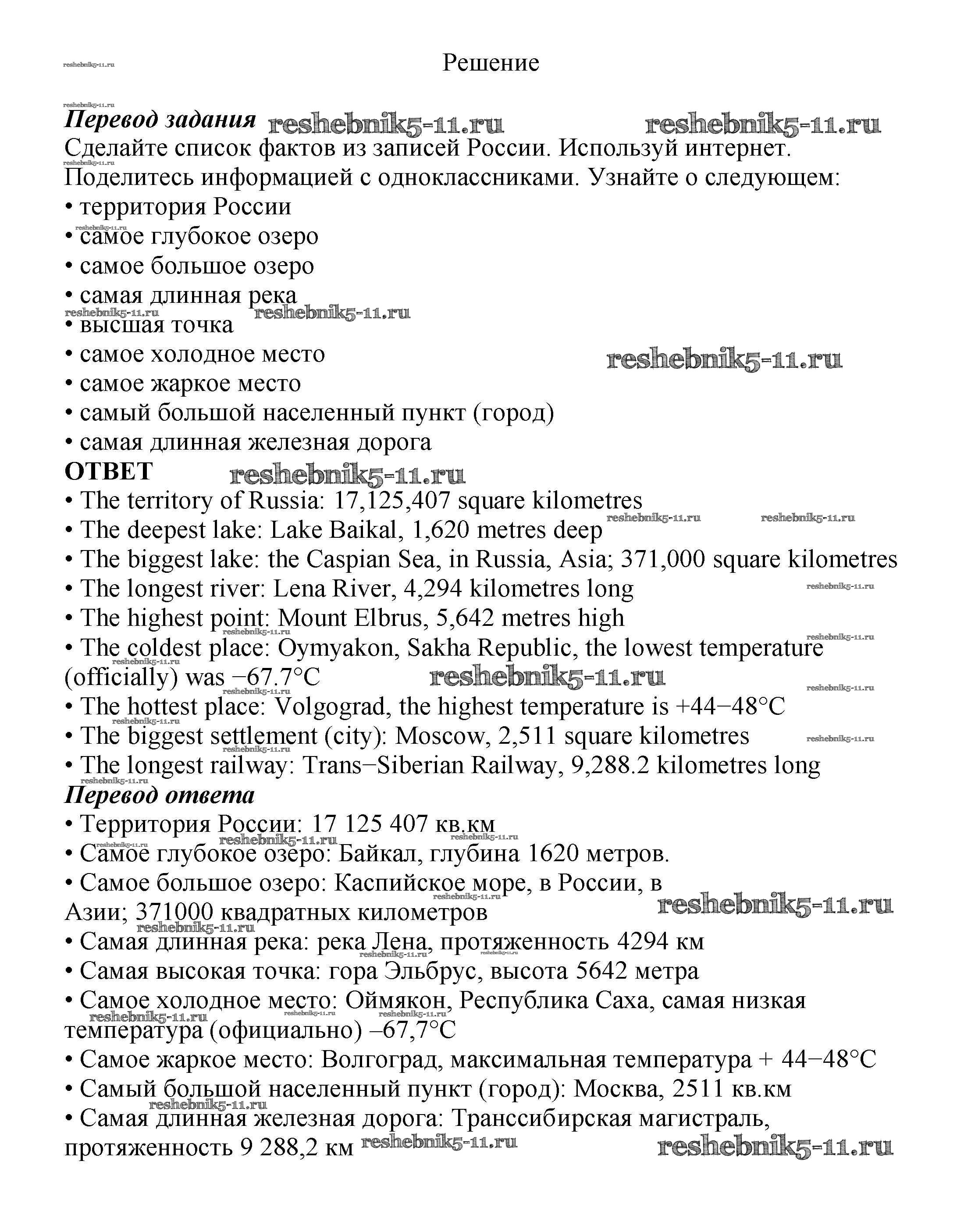 Готовая домашняя работа с ответами по Английскому языку за 8 класс Биболетова, Трубанева Учебник Enjoy English Титул 2015 ФГОС - Section 7. This Earth was made for you and me 125