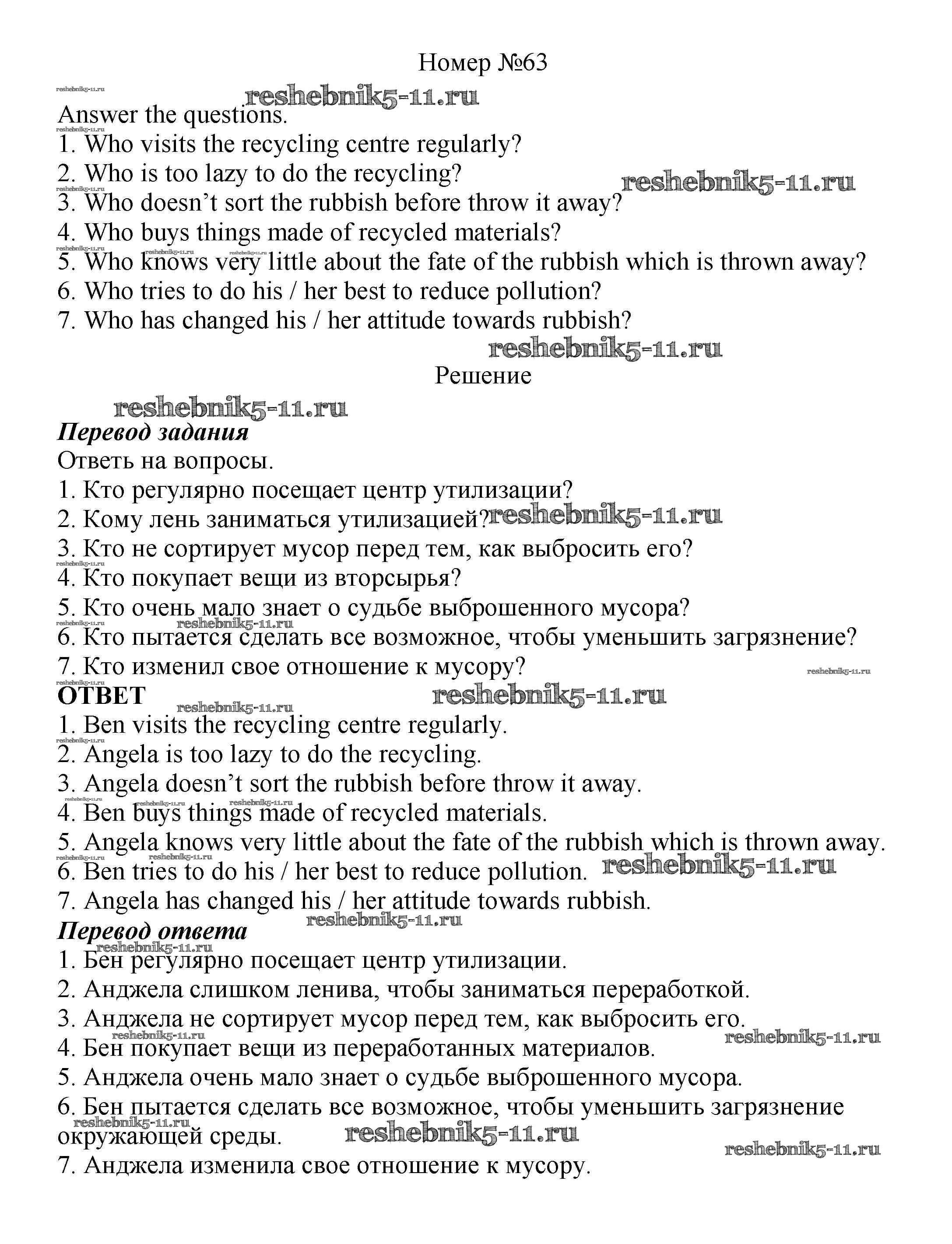 Готовая домашняя работа с ответами по Английскому языку за 8 класс Биболетова, Трубанева Учебник Enjoy English Титул 2015 ФГОС - Section 5. What can we do to save the Earth? 63