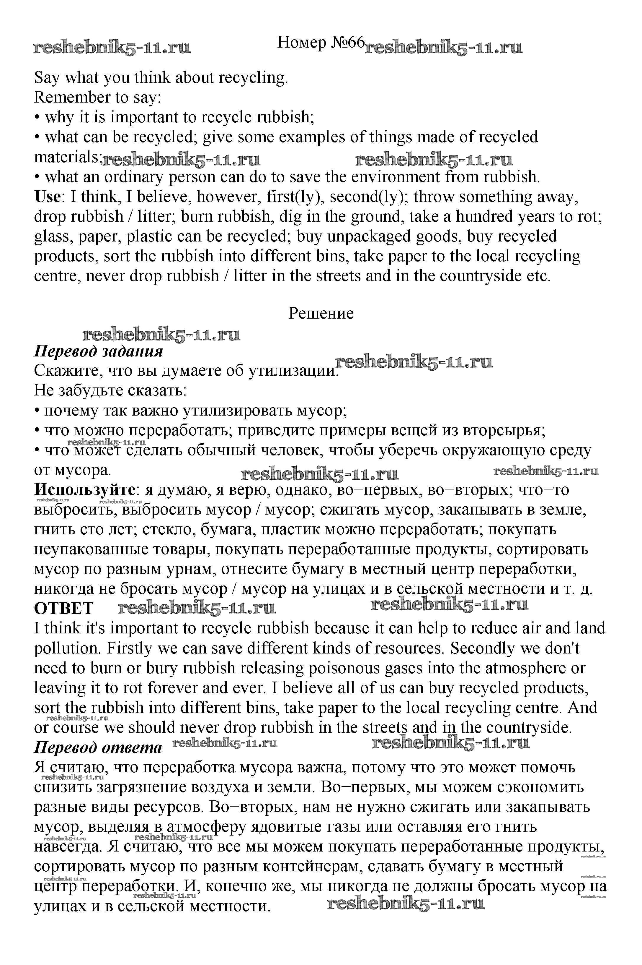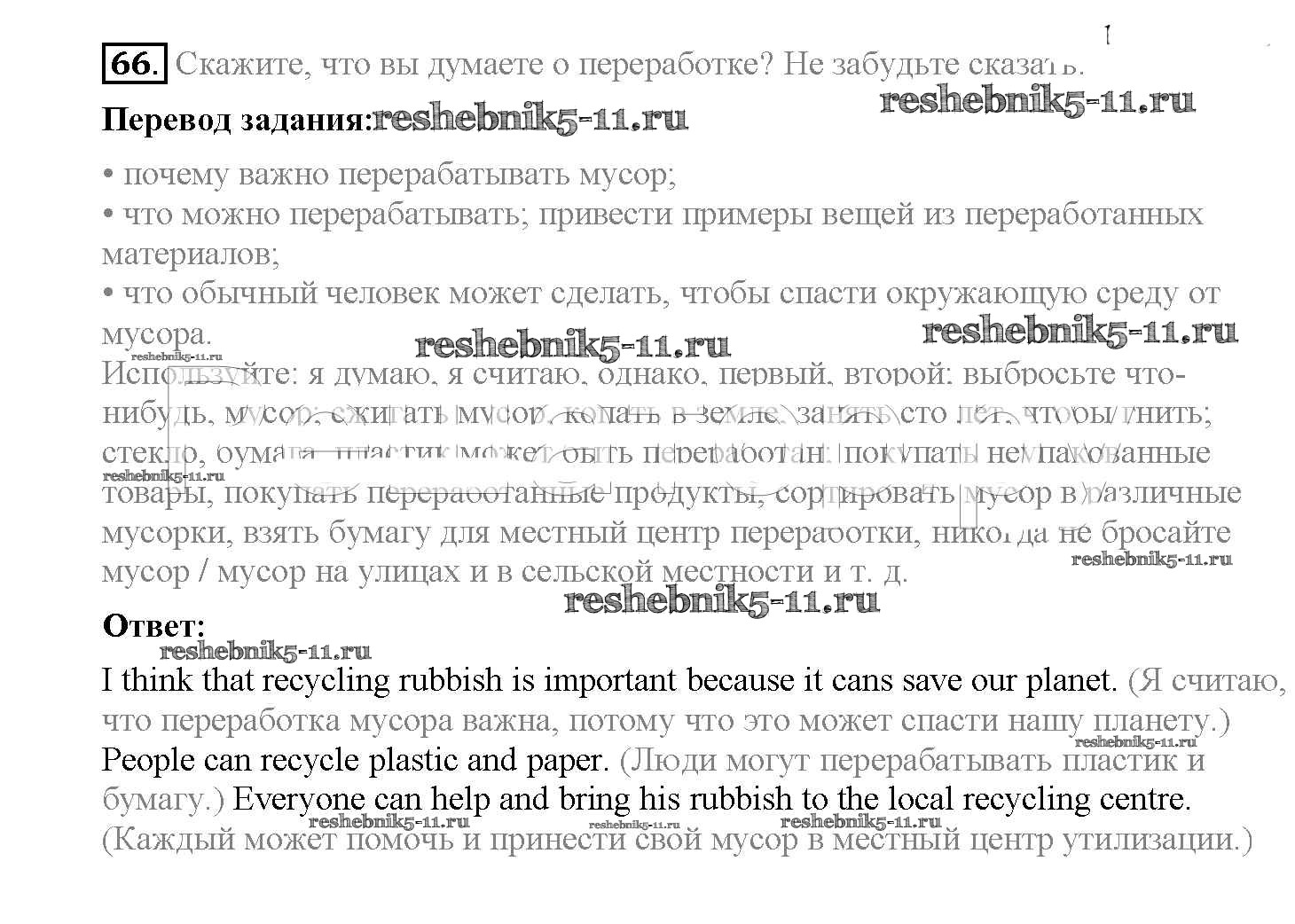 Готовая домашняя работа с ответами по Английскому языку за 8 класс Биболетова, Трубанева Учебник Enjoy English Титул 2015 ФГОС - Section 5. What can we do to save the Earth? 66