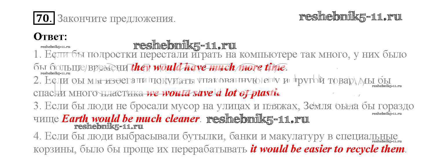 Готовая домашняя работа с ответами по Английскому языку за 8 класс Биболетова, Трубанева Учебник Enjoy English Титул 2015 ФГОС - Section 5. What can we do to save the Earth? 70