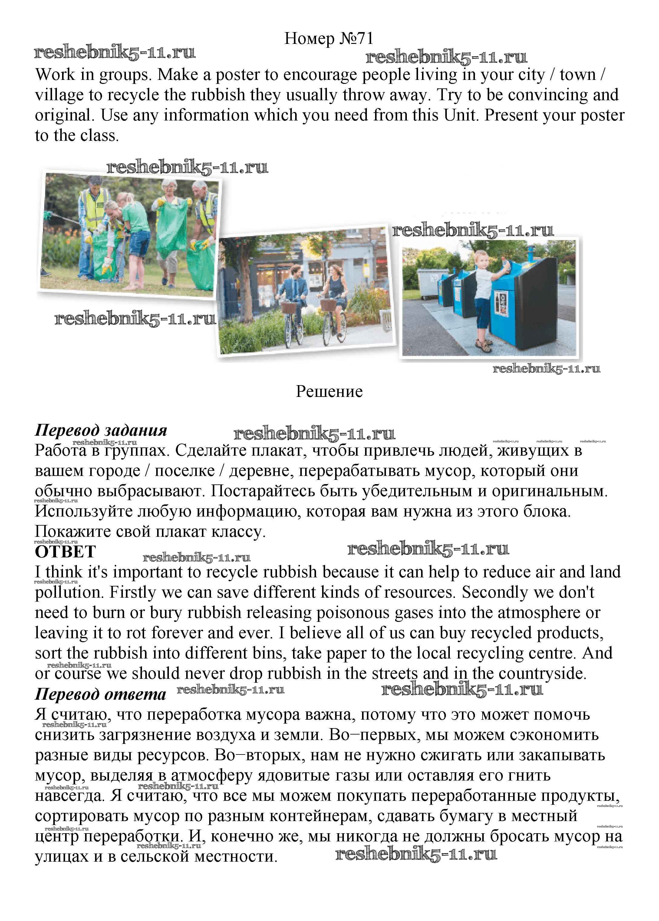 Готовая домашняя работа с ответами по Английскому языку за 8 класс Биболетова, Трубанева Учебник Enjoy English Титул 2015 ФГОС - Section 5. What can we do to save the Earth? 71