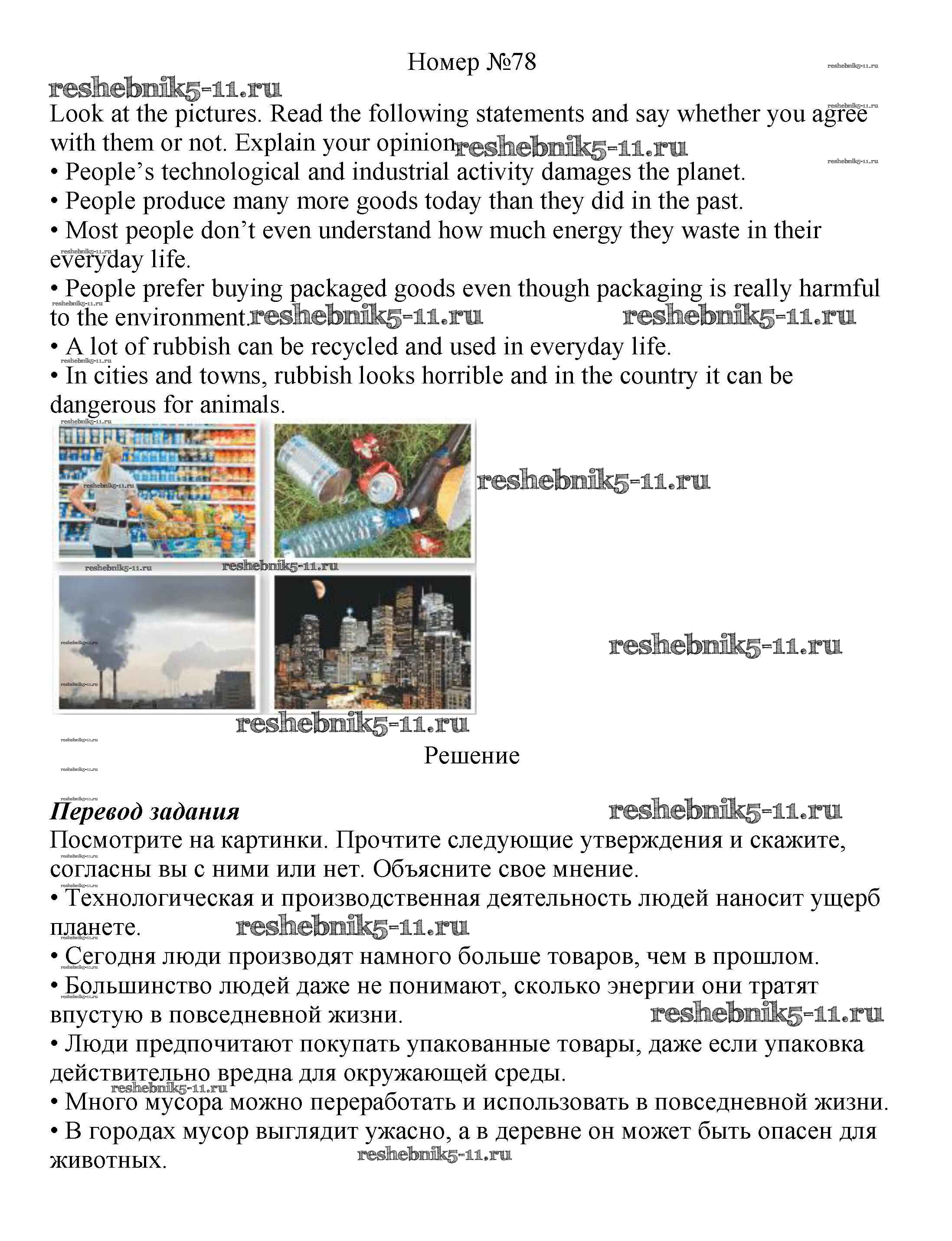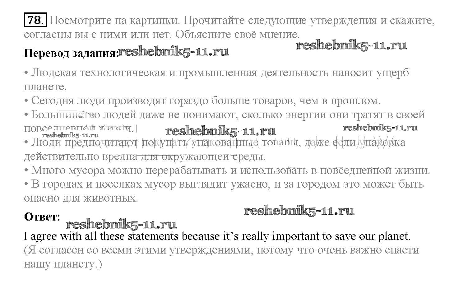 Готовая домашняя работа с ответами по Английскому языку за 8 класс Биболетова, Трубанева Учебник Enjoy English Титул 2015 ФГОС - Section 5. What can we do to save the Earth? 78