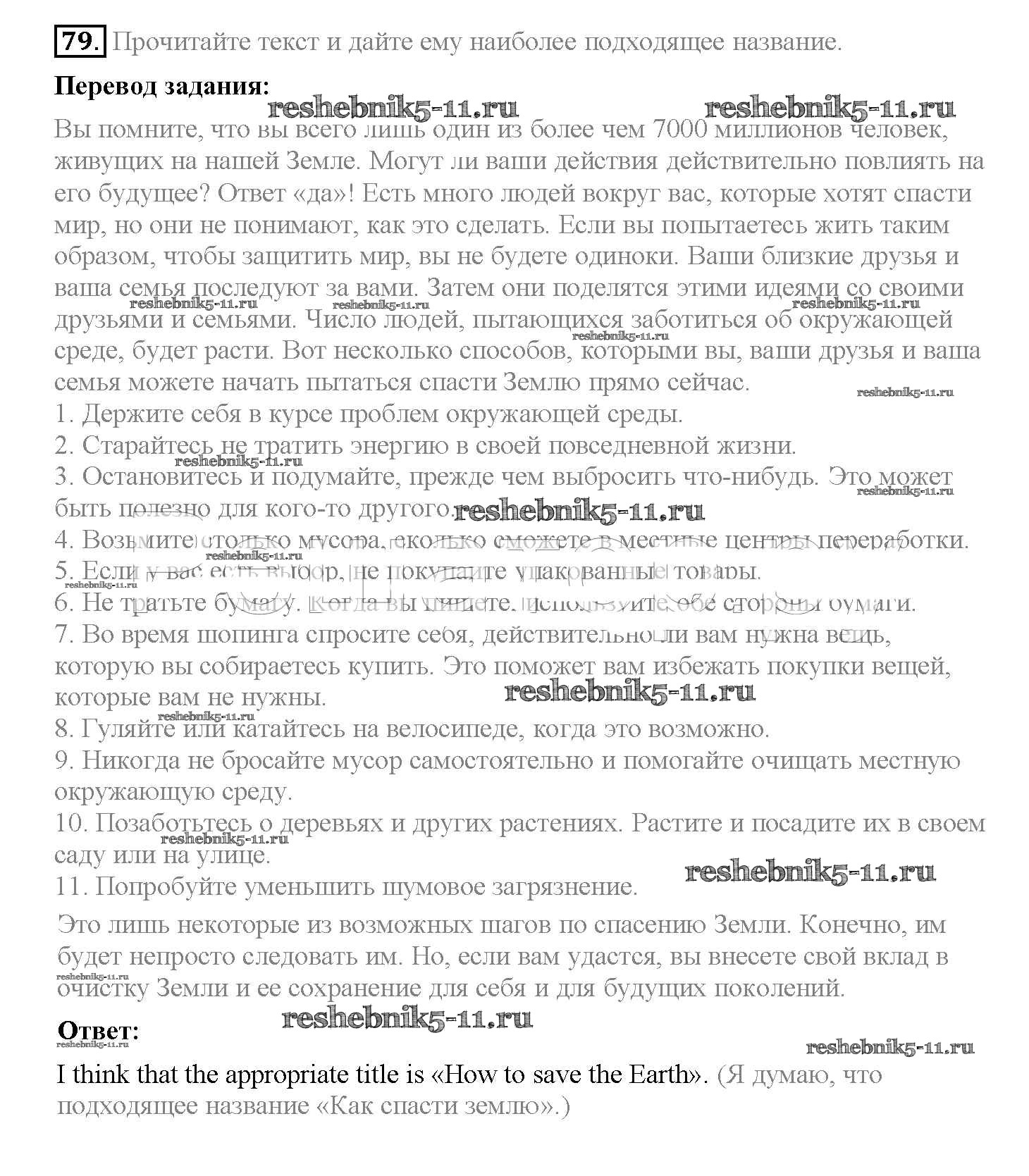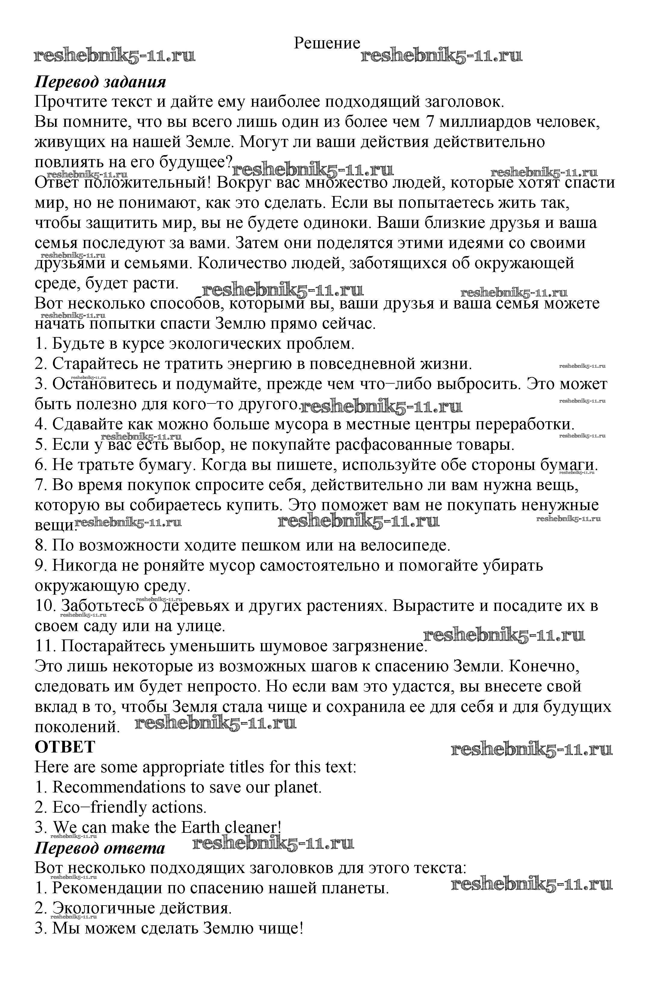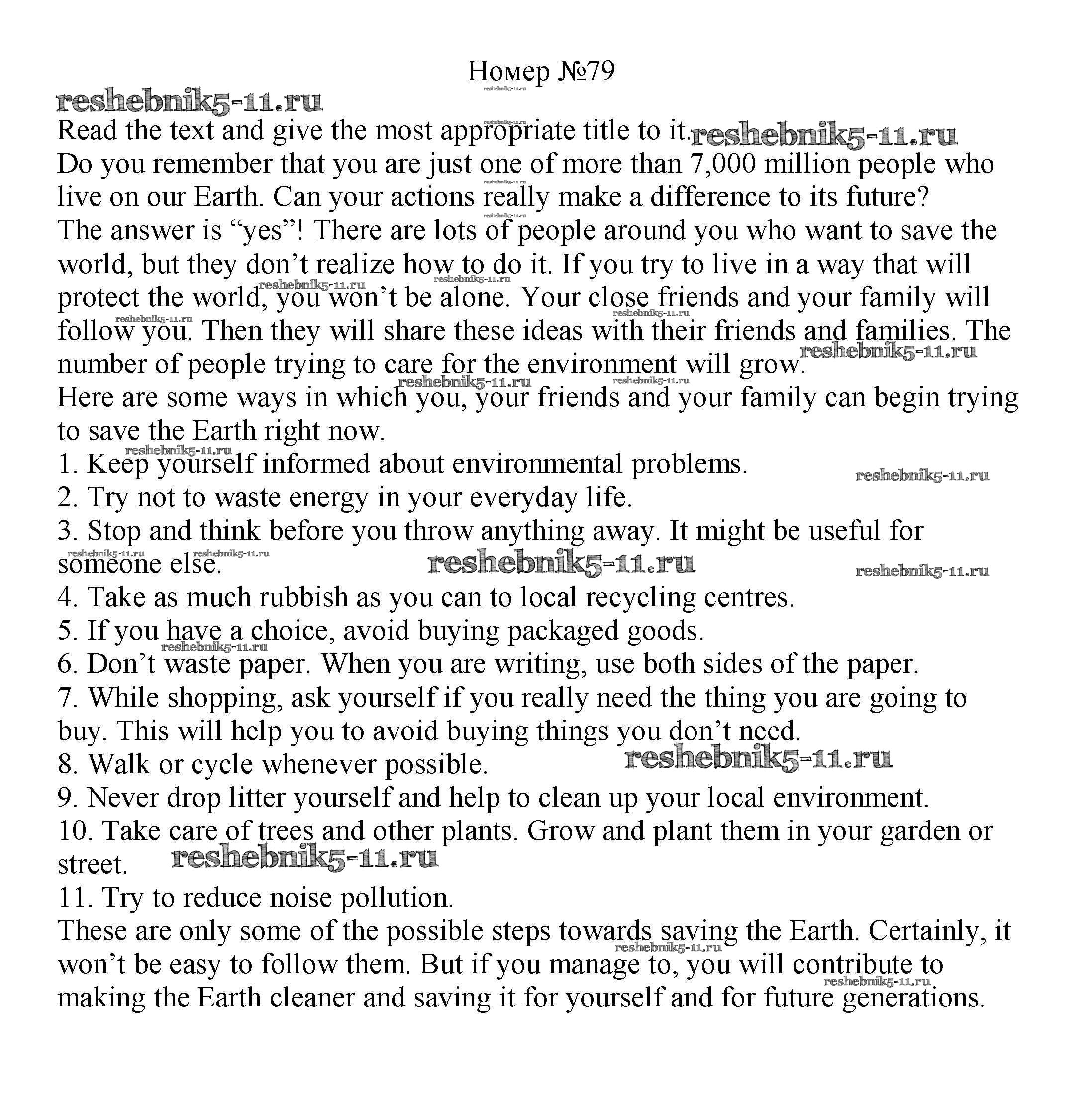 Готовая домашняя работа с ответами по Английскому языку за 8 класс Биболетова, Трубанева Учебник Enjoy English Титул 2015 ФГОС - Section 5. What can we do to save the Earth? 79