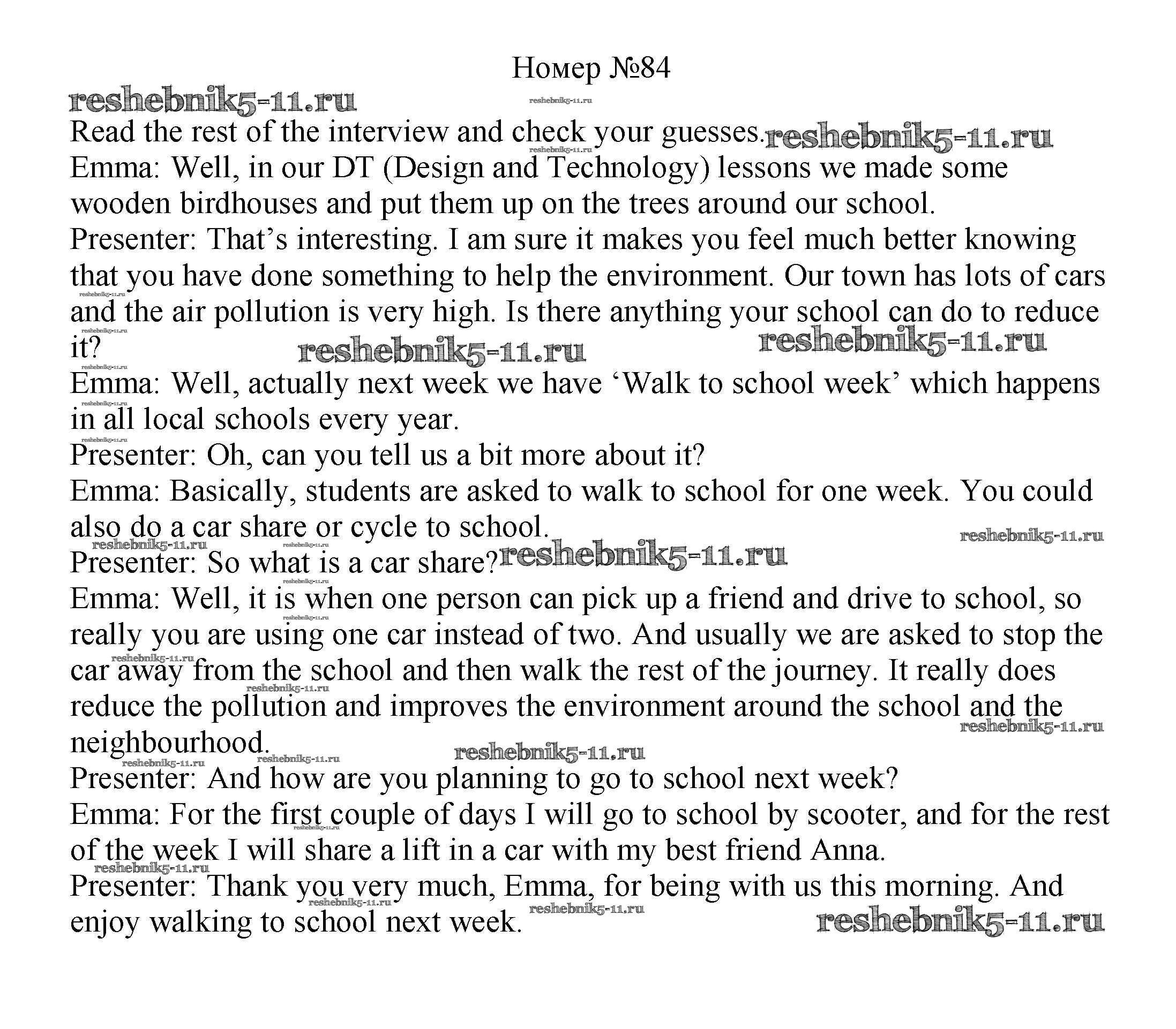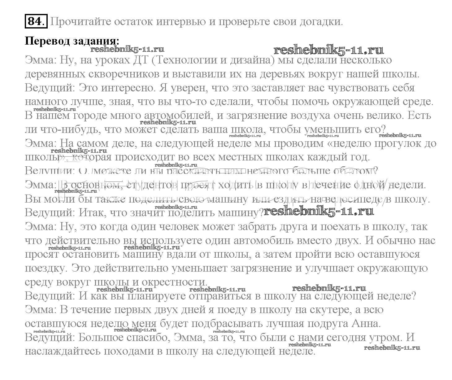 Готовая домашняя работа с ответами по Английскому языку за 8 класс Биболетова, Трубанева Учебник Enjoy English Титул 2015 ФГОС - Section 5. What can we do to save the Earth? 84