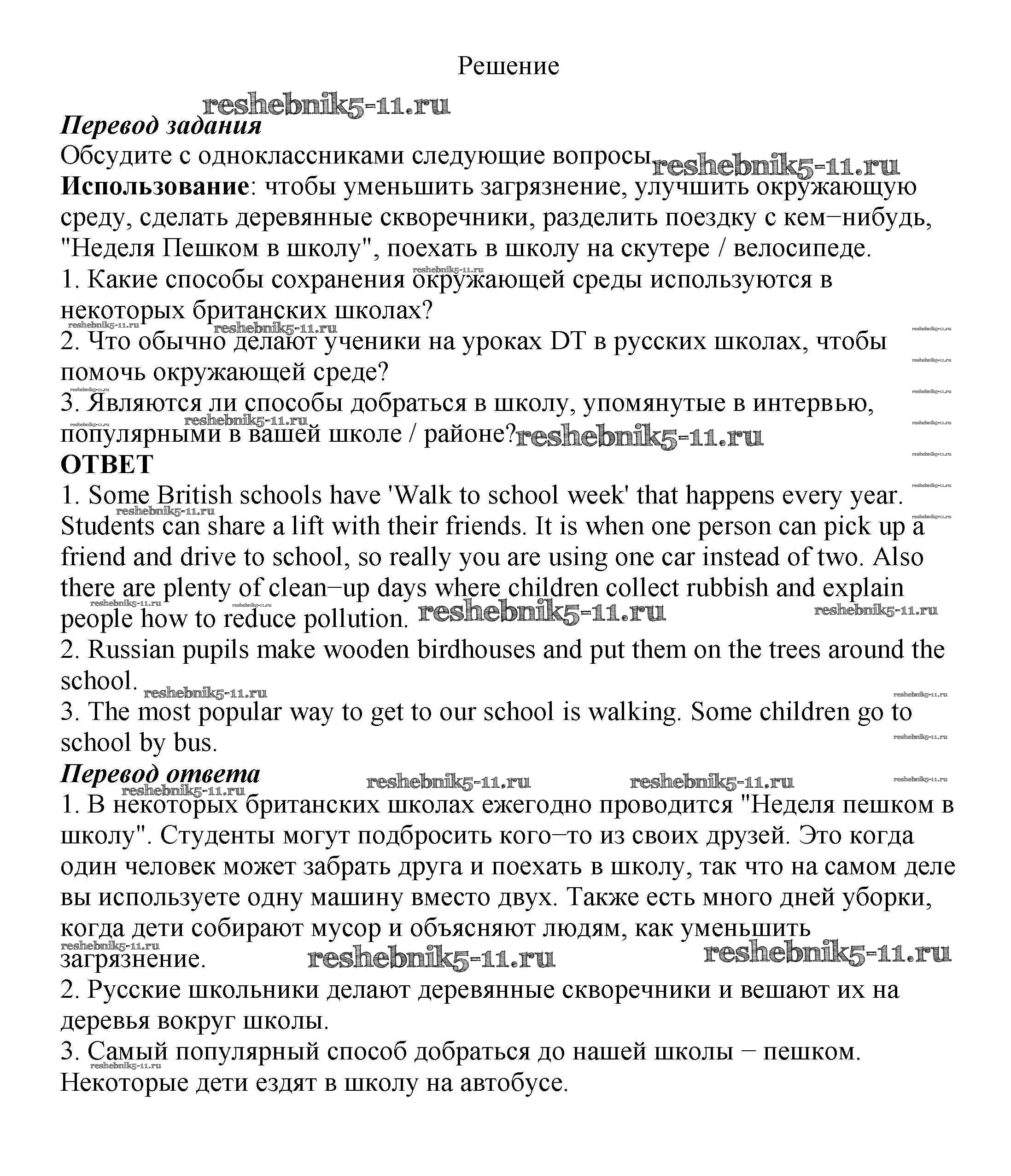 Готовая домашняя работа с ответами по Английскому языку за 8 класс Биболетова, Трубанева Учебник Enjoy English Титул 2015 ФГОС - Section 5. What can we do to save the Earth? 85