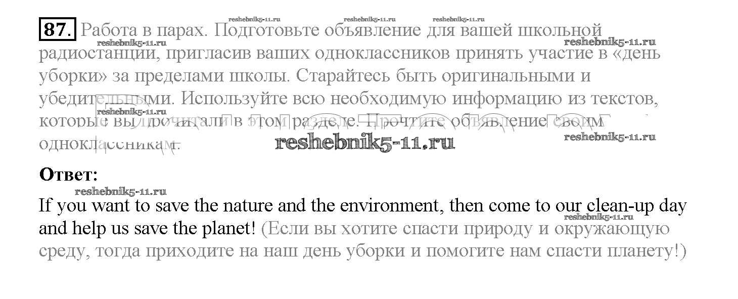 Готовая домашняя работа с ответами по Английскому языку за 8 класс Биболетова, Трубанева Учебник Enjoy English Титул 2015 ФГОС - Section 5. What can we do to save the Earth? 87