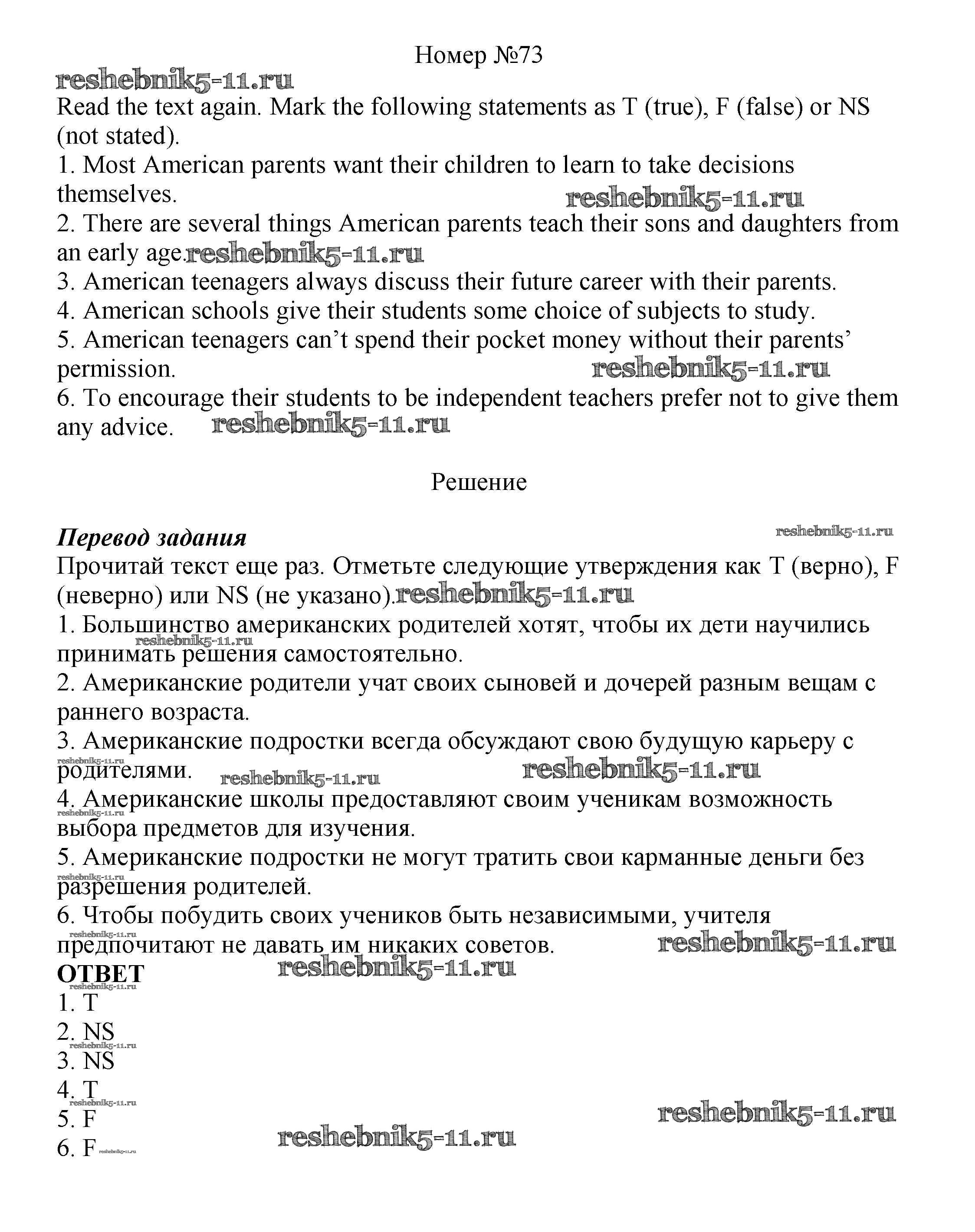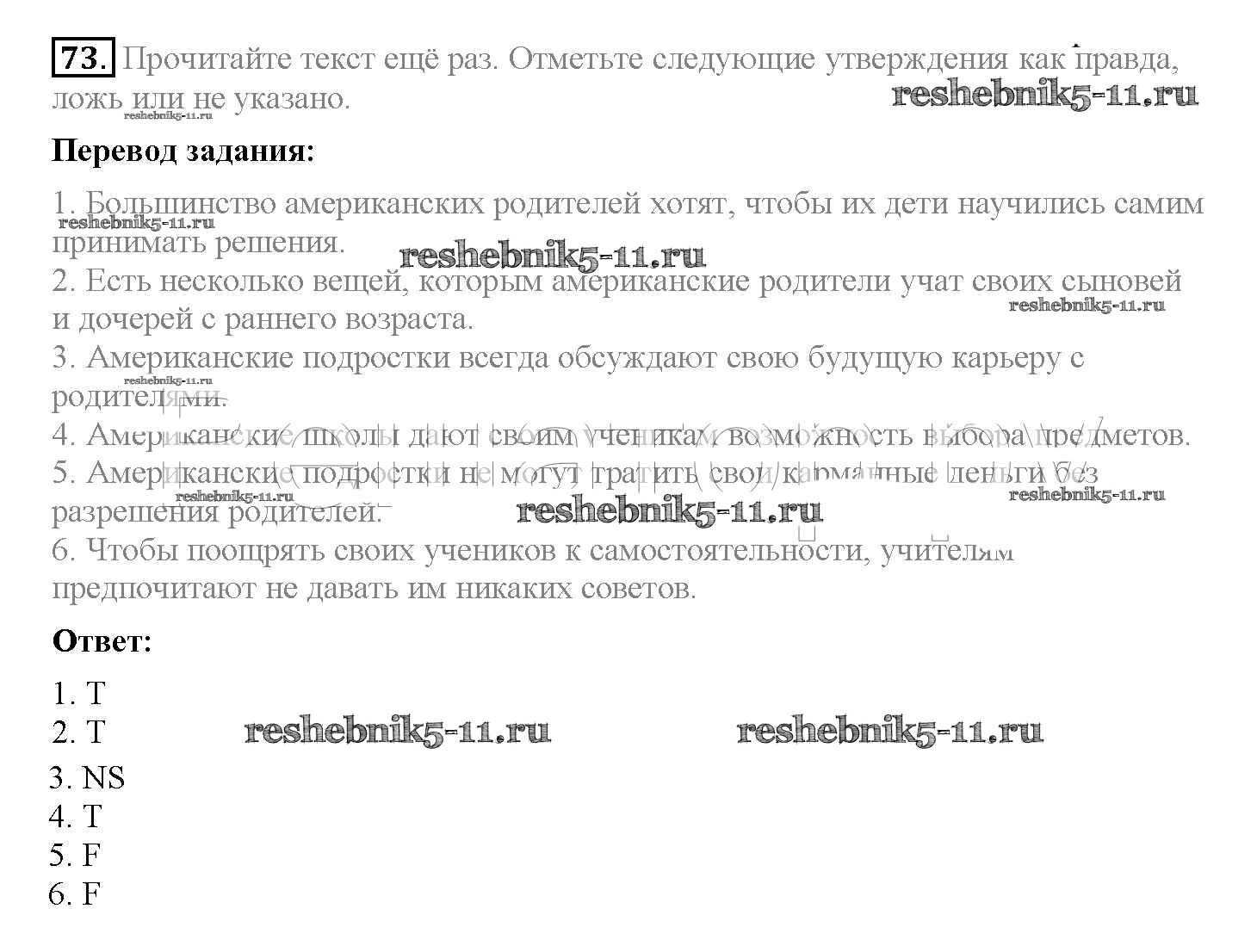 Готовая домашняя работа с ответами по Английскому языку за 8 класс Биболетова, Трубанева Учебник Enjoy English Титул 2015 ФГОС - Section 5. Is it easy to be independent? 73