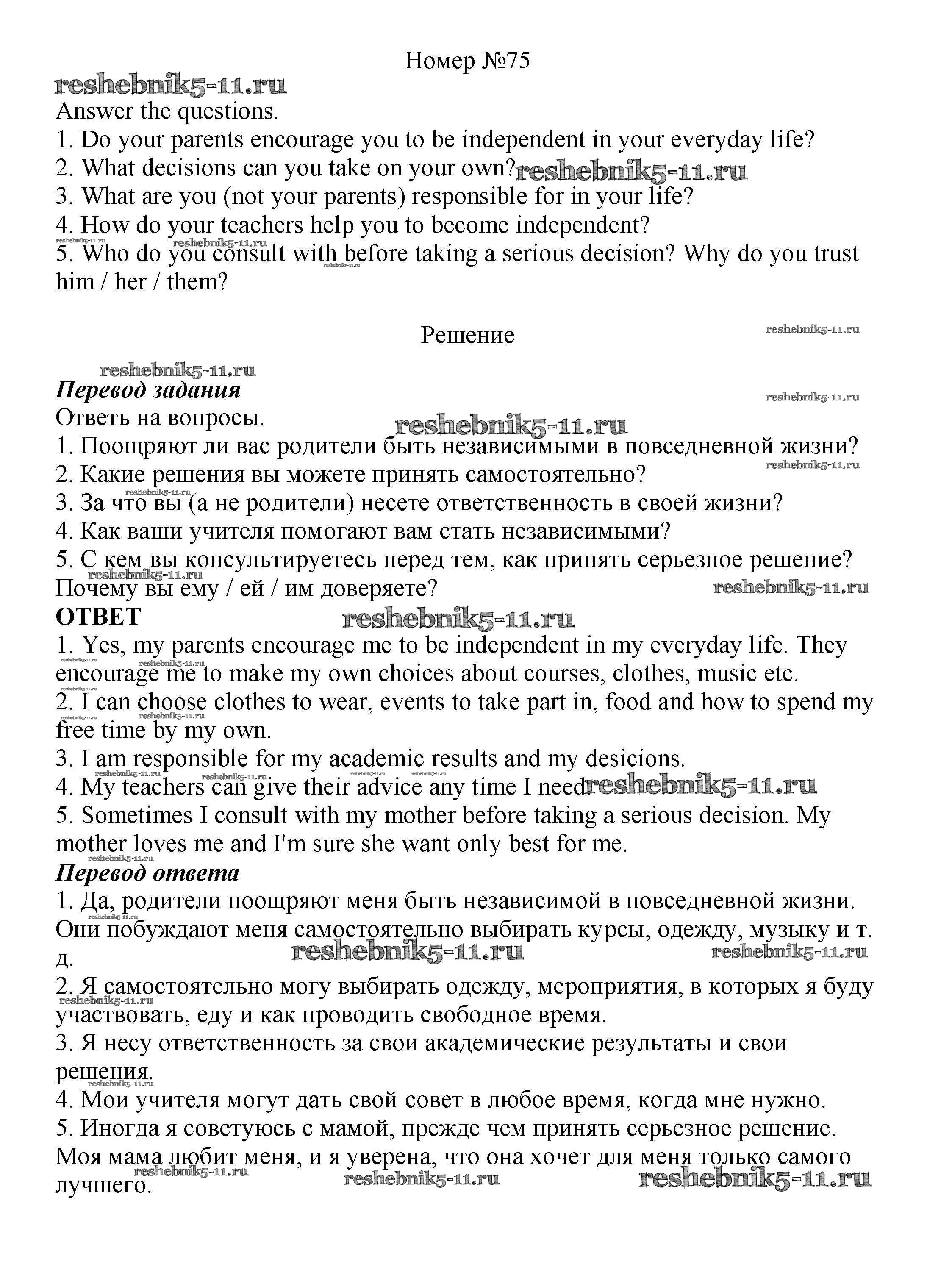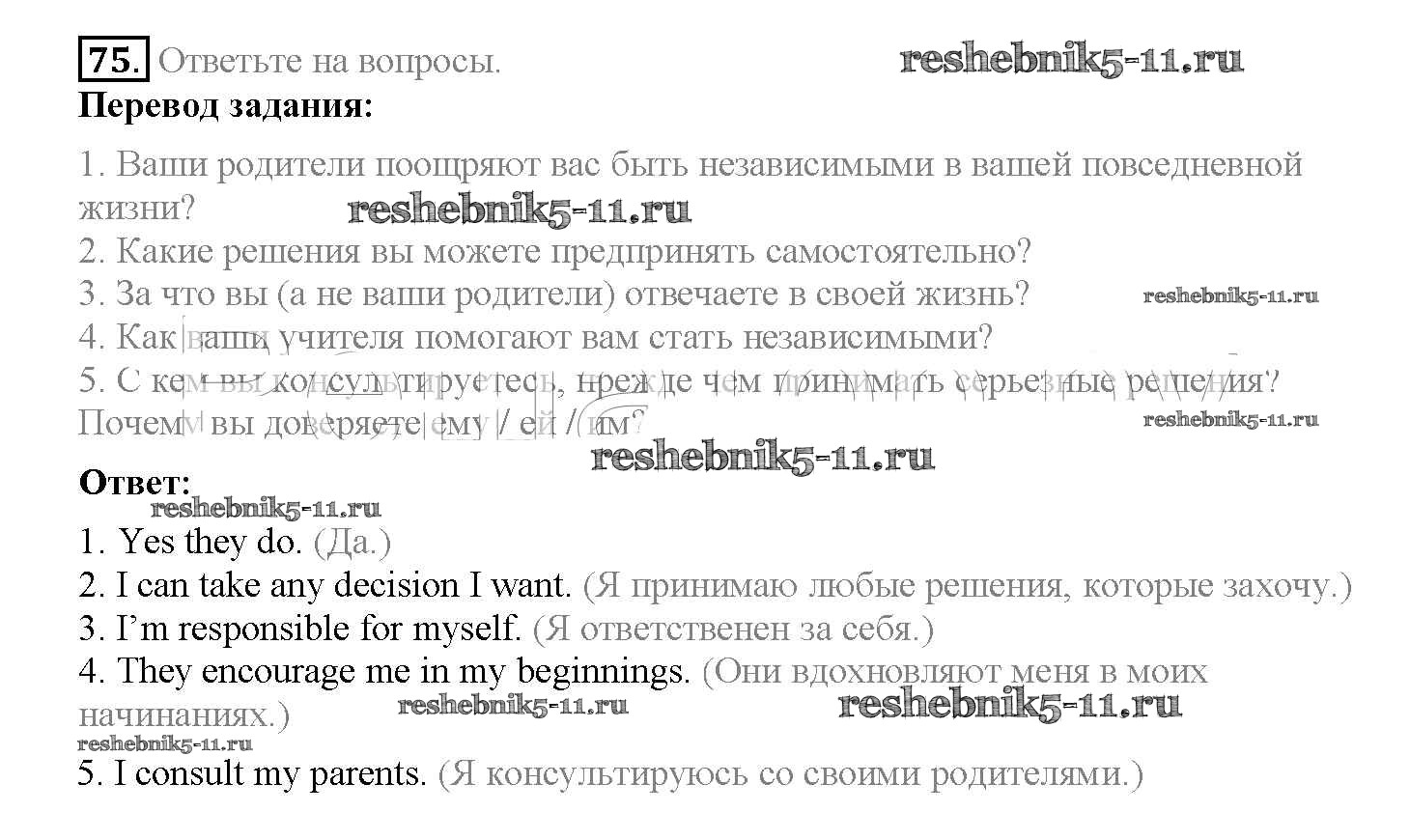 Готовая домашняя работа с ответами по Английскому языку за 8 класс Биболетова, Трубанева Учебник Enjoy English Титул 2015 ФГОС - Section 5. Is it easy to be independent? 75