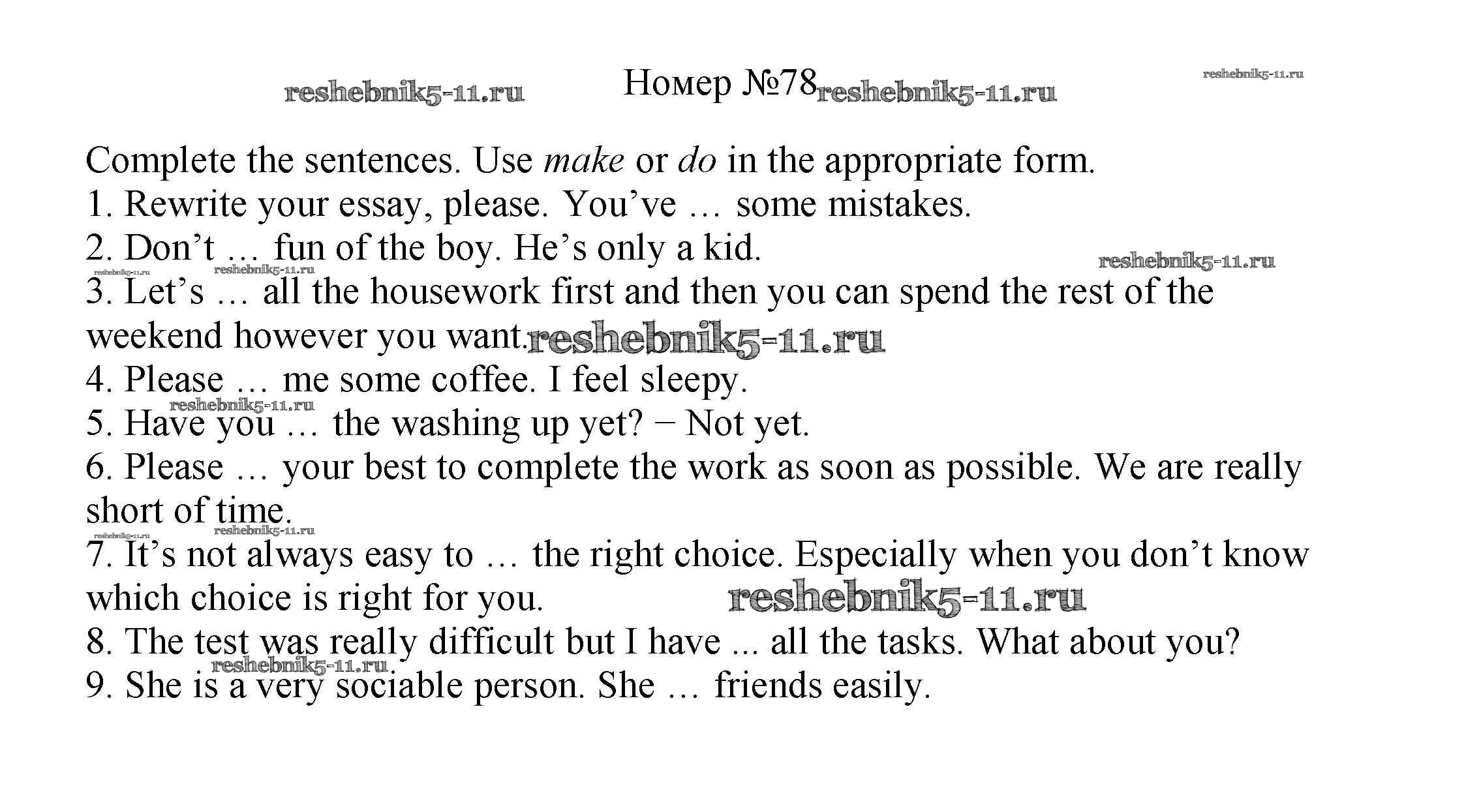 Готовая домашняя работа с ответами по Английскому языку за 8 класс Биболетова, Трубанева Учебник Enjoy English Титул 2015 ФГОС - Section 5. Is it easy to be independent? 78