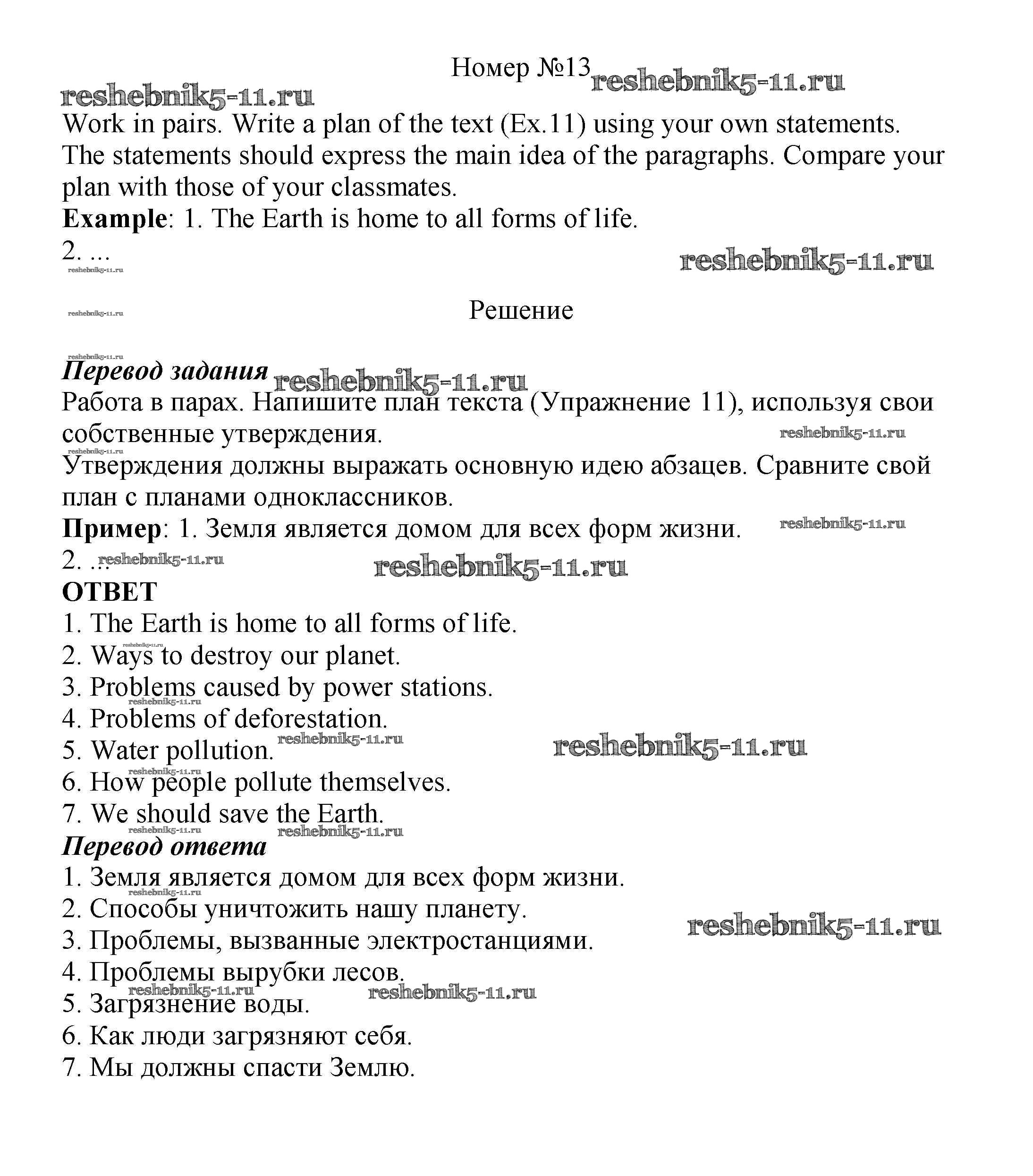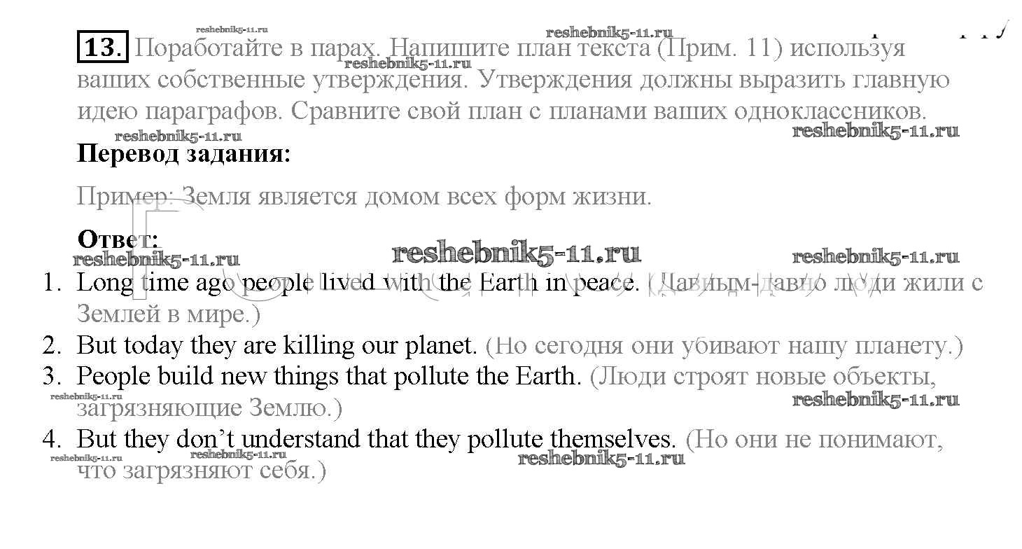 Готовая домашняя работа с ответами по Английскому языку за 8 класс Биболетова, Трубанева Учебник Enjoy English Титул 2015 ФГОС - Section 1. The Earth needs a friend, doesn't it? 13
