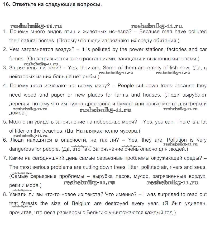 Готовая домашняя работа с ответами по Английскому языку за 8 класс Биболетова, Трубанева Учебник Enjoy English Титул 2015 ФГОС - Section 1. The Earth needs a friend, doesn't it? 16