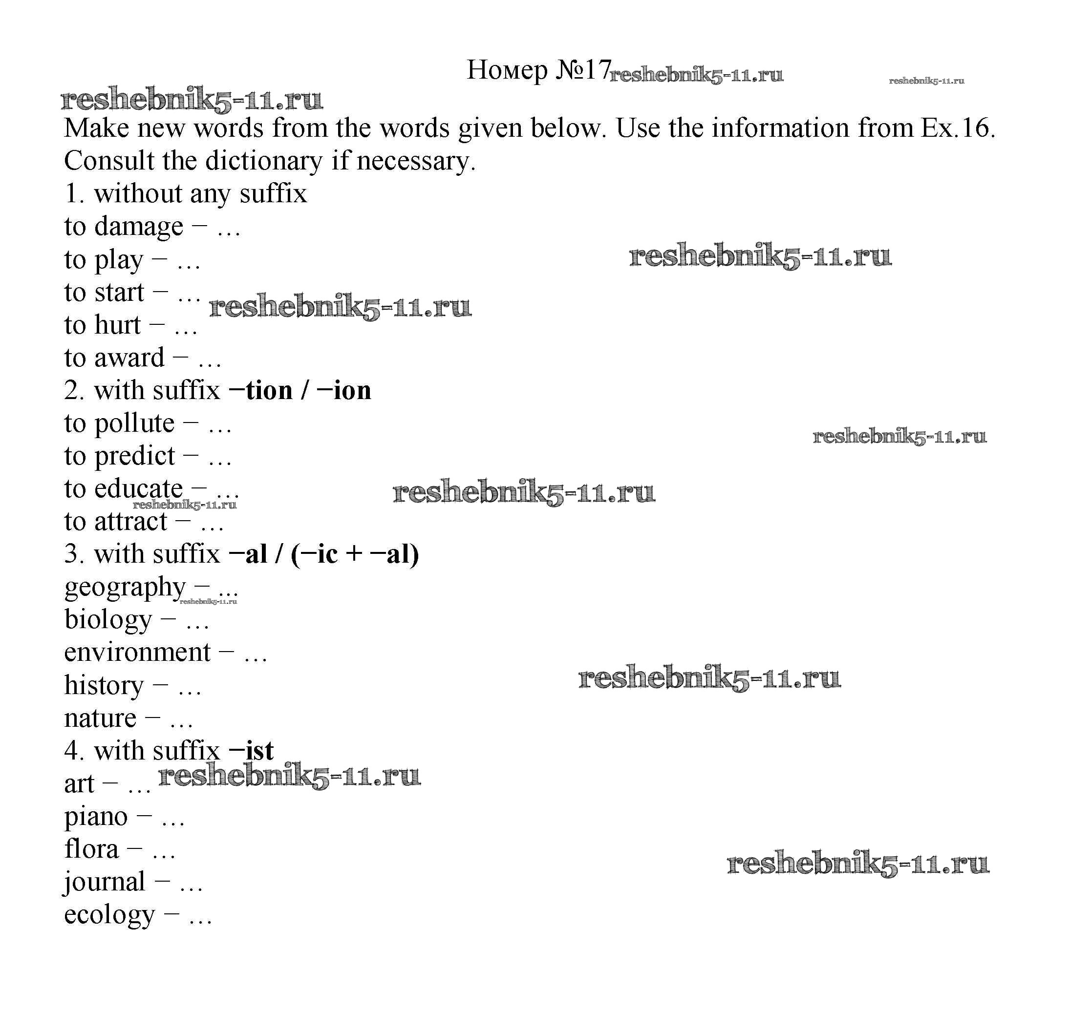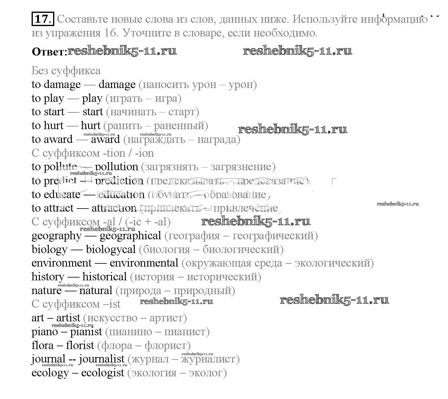 Готовая домашняя работа с ответами по Английскому языку за 8 класс Биболетова, Трубанева Учебник Enjoy English Титул 2015 ФГОС - Section 1. The Earth needs a friend, doesn't it? 17