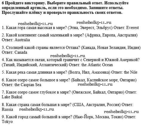 Готовая домашняя работа с ответами по Английскому языку за 8 класс Биболетова, Трубанева Учебник Enjoy English Титул 2015 ФГОС - Section 1. The Earth needs a friend, doesn't it? 6