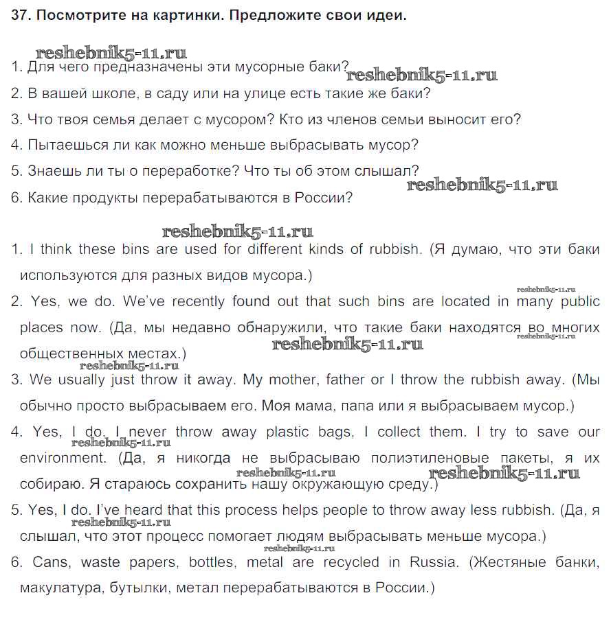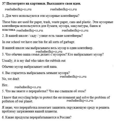 Готовая домашняя работа с ответами по Английскому языку за 8 класс Биболетова, Трубанева Учебник Enjoy English Титул 2015 ФГОС - Section 4. Why throw away? Why not recycle? 37
