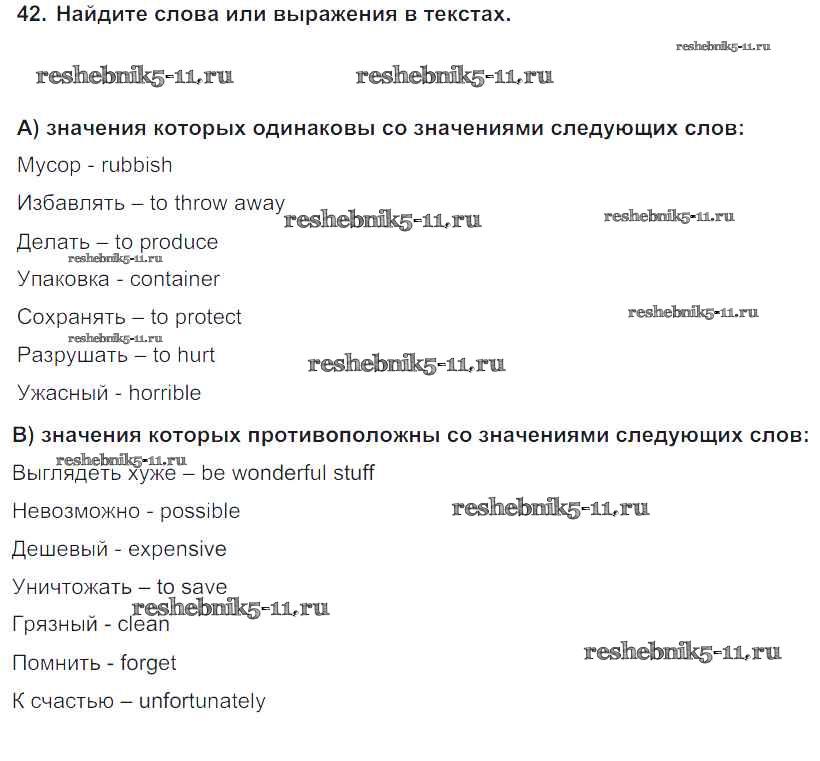 Готовая домашняя работа с ответами по Английскому языку за 8 класс Биболетова, Трубанева Учебник Enjoy English Титул 2015 ФГОС - Section 4. Why throw away? Why not recycle? 42