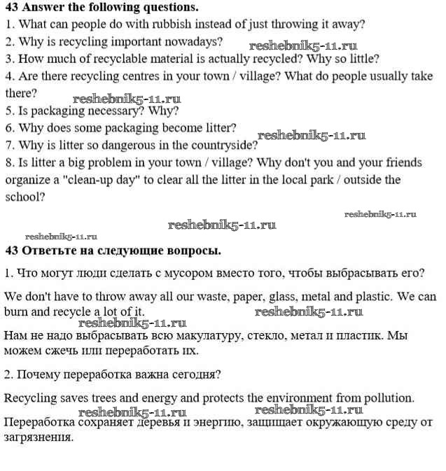 Готовая домашняя работа с ответами по Английскому языку за 8 класс Биболетова, Трубанева Учебник Enjoy English Титул 2015 ФГОС - Section 4. Why throw away? Why not recycle? 43