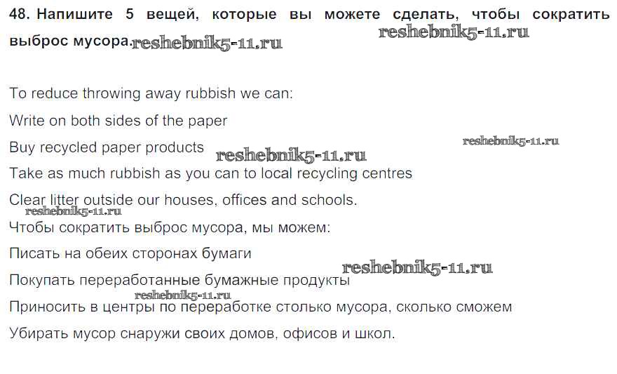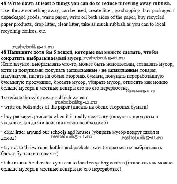 Готовая домашняя работа с ответами по Английскому языку за 8 класс Биболетова, Трубанева Учебник Enjoy English Титул 2015 ФГОС - Section 4. Why throw away? Why not recycle? 48