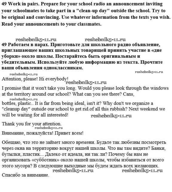 Готовая домашняя работа с ответами по Английскому языку за 8 класс Биболетова, Трубанева Учебник Enjoy English Титул 2015 ФГОС - Section 4. Why throw away? Why not recycle? 49