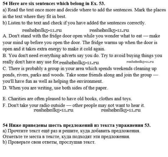 Готовая домашняя работа с ответами по Английскому языку за 8 класс Биболетова, Трубанева Учебник Enjoy English Титул 2015 ФГОС - Section 5. What can we do to save the Earth? 54