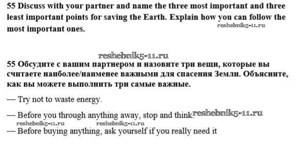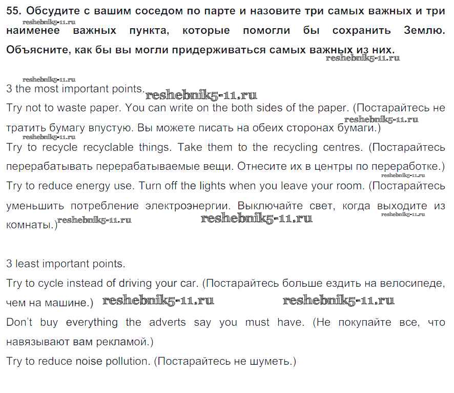 Готовая домашняя работа с ответами по Английскому языку за 8 класс Биболетова, Трубанева Учебник Enjoy English Титул 2015 ФГОС - Section 5. What can we do to save the Earth? 55